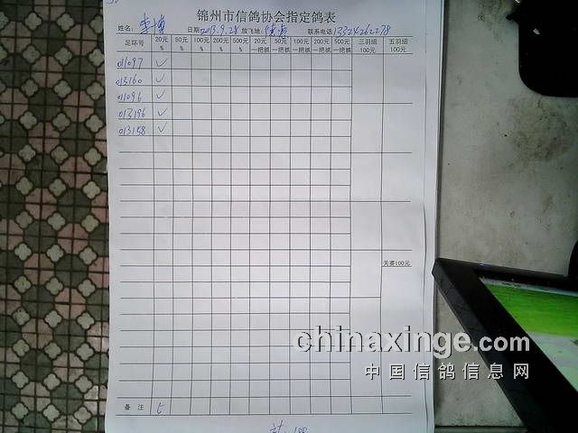 2020年平翔赛鸽俱乐部秋季五关赛使用托瑞斯电子鸽钟