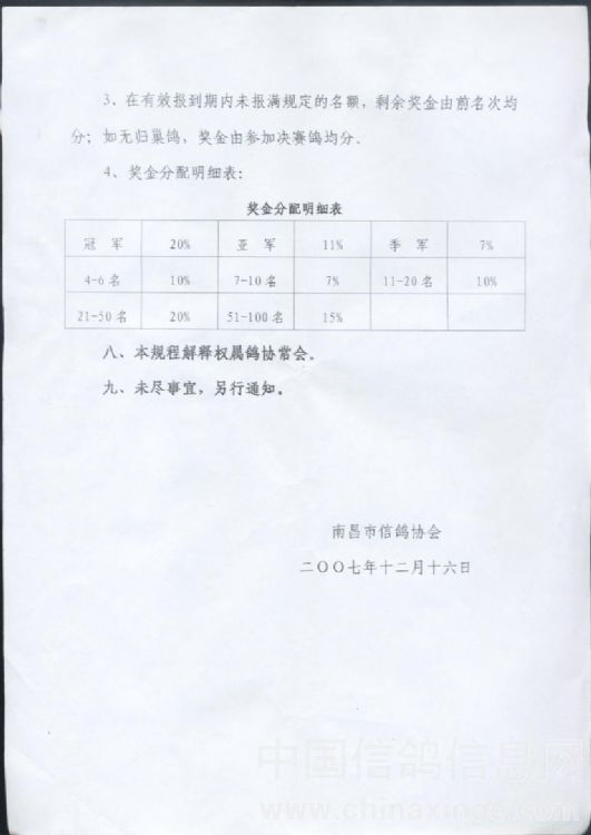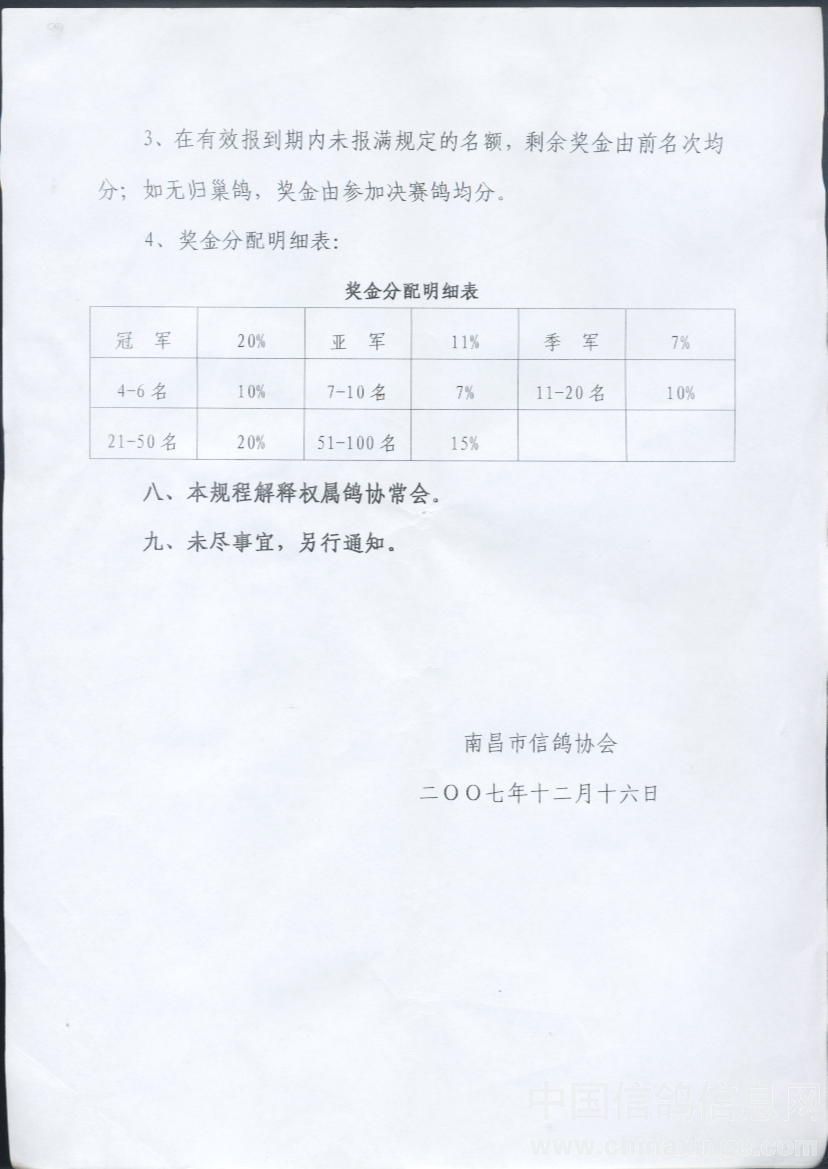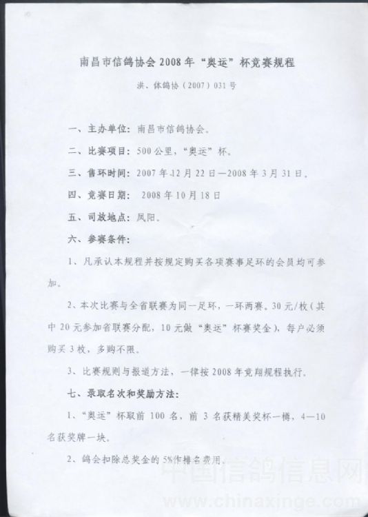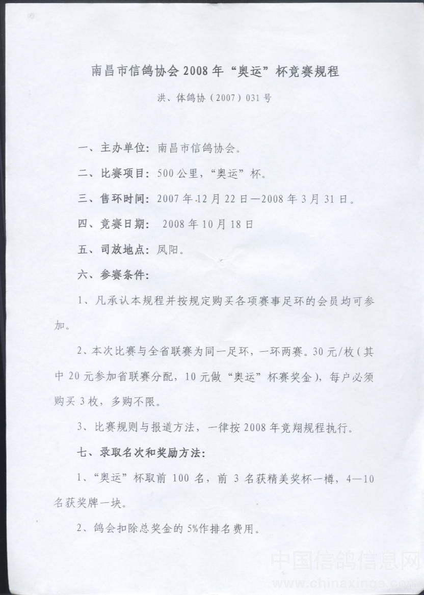 南昌市信鸽协会2008年“奥运”杯竞赛规程