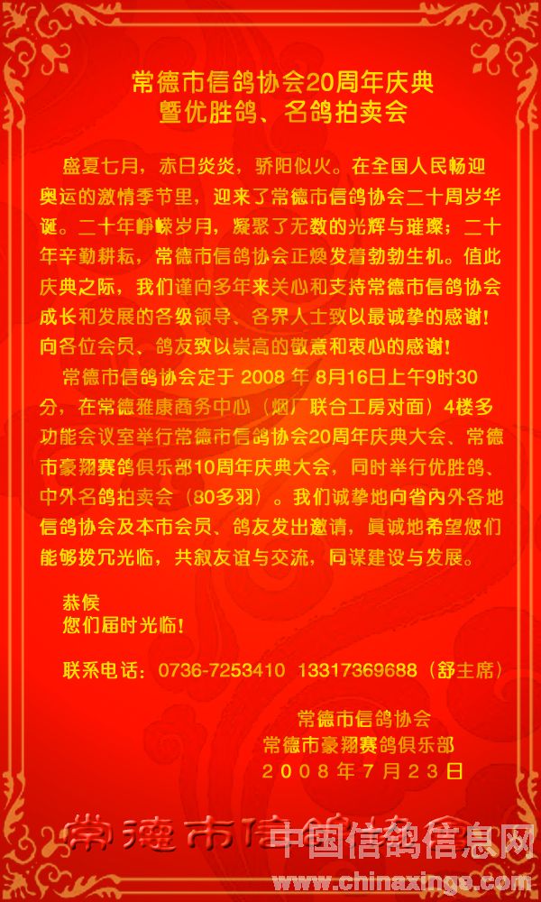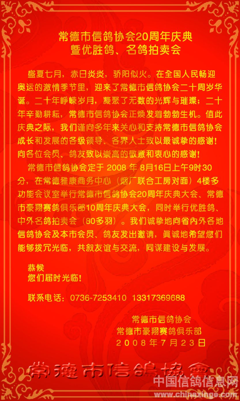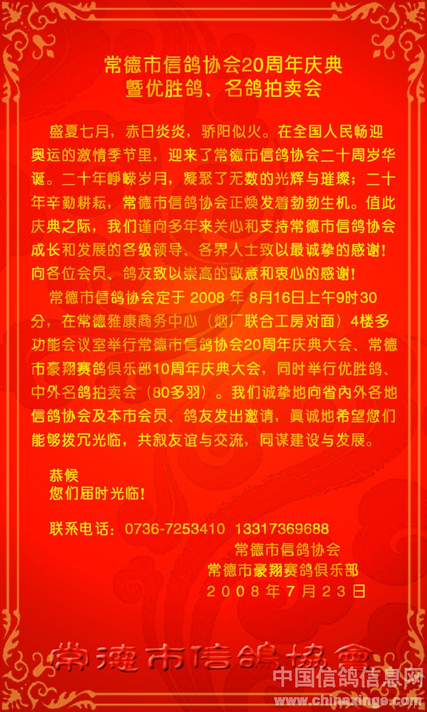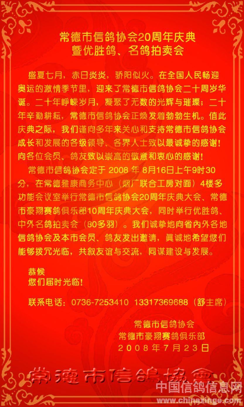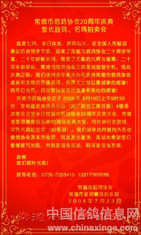 常德市信鸽协会20周年庆典暨优胜鸽、名鸽拍卖会