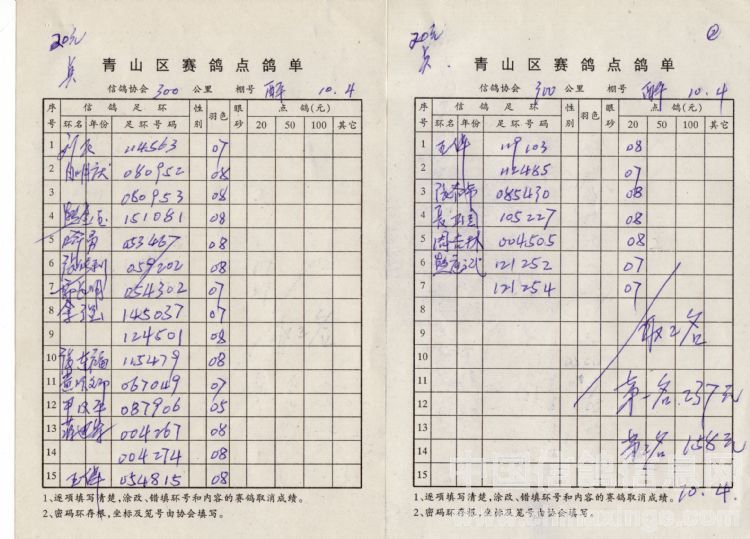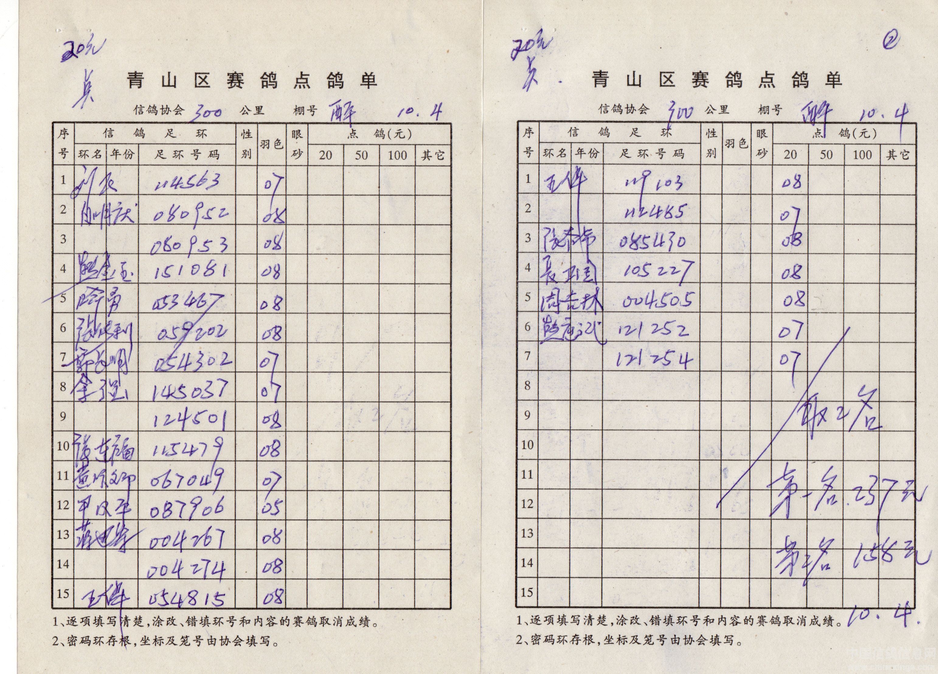 武汉市洪山区信鸽协会2008年10月5日确山竞赛指定鸽清单