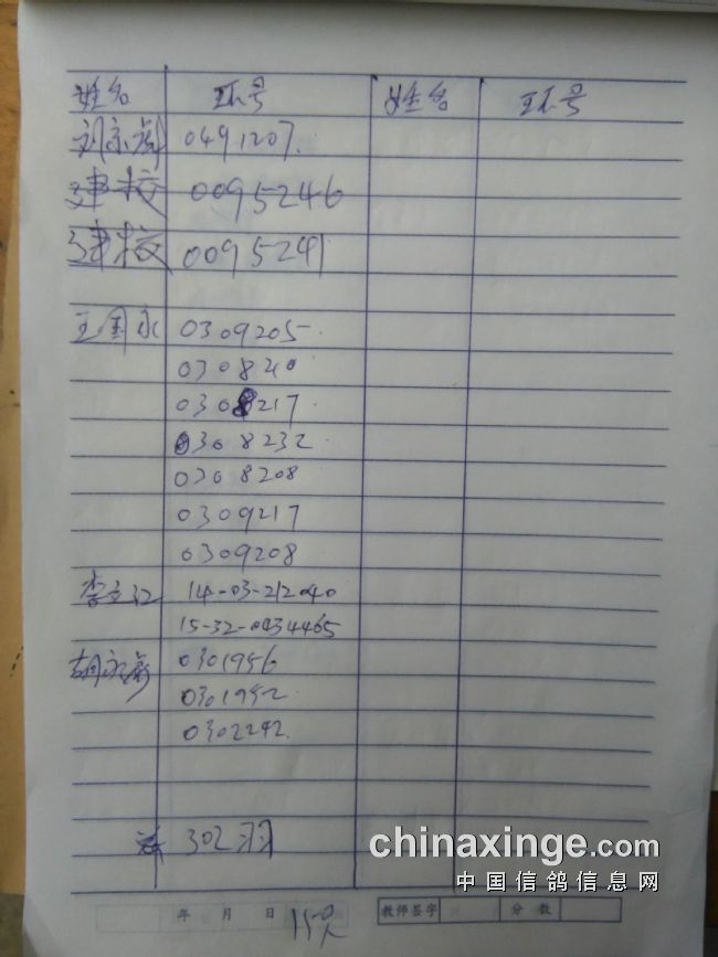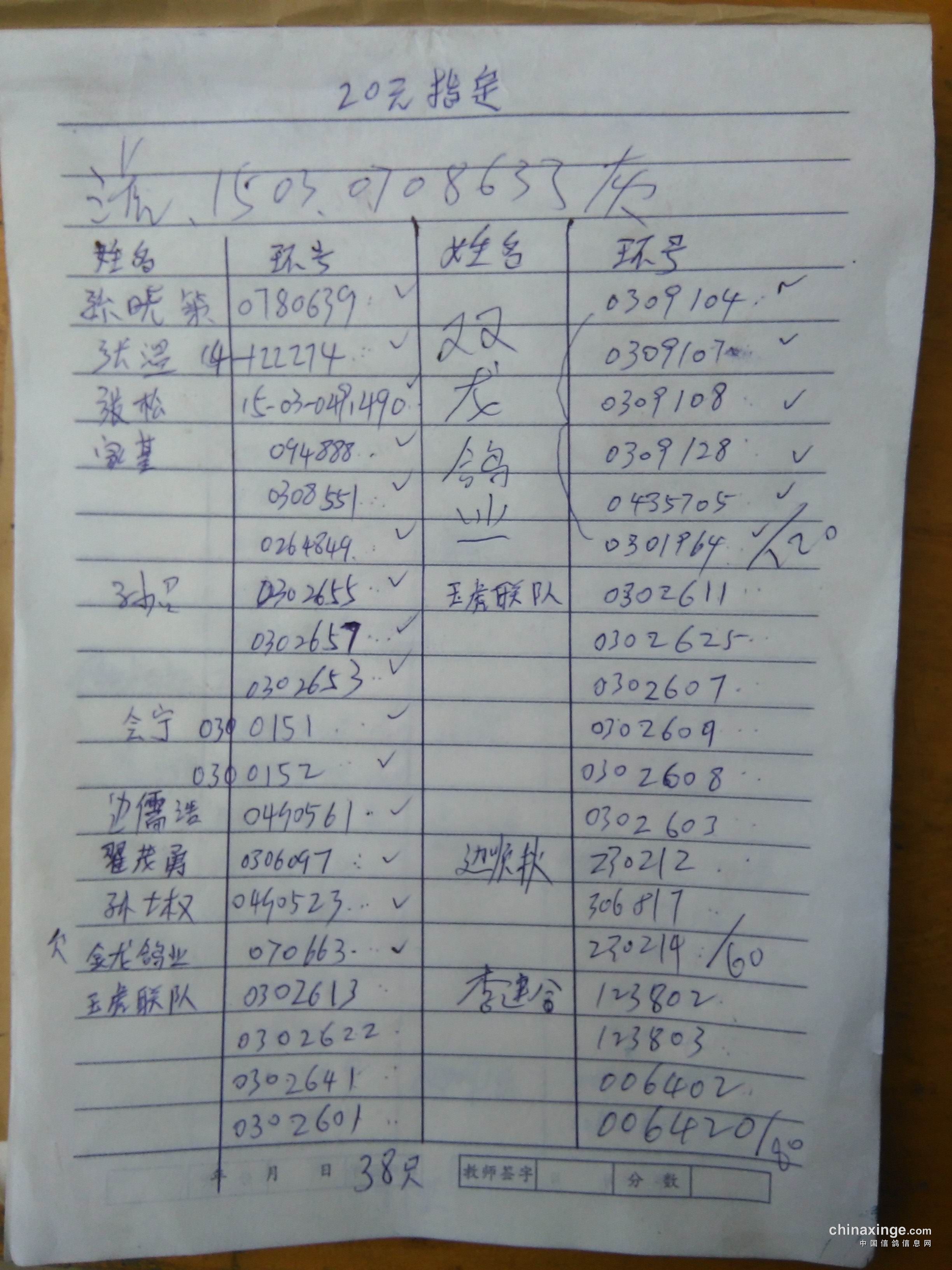宁晋大陆信鸽协会25年秋200公里清丰成绩