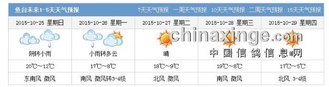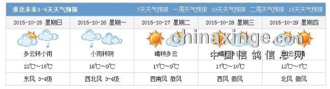 淮北市信鸽协会2015秋350公里赛前最新天气预报