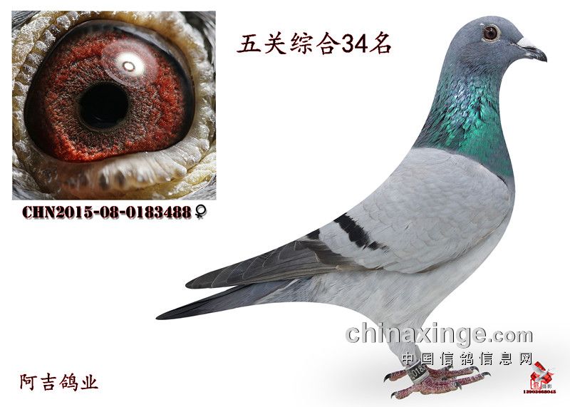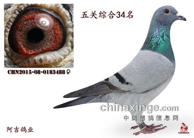 五关综合三十四名; 阿吉鸽业 2015-08-0183488 雌