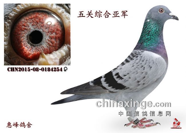 五关综合亚军; 惠峰鸽舍 2015-08-0184254 雌 13796100460
