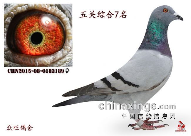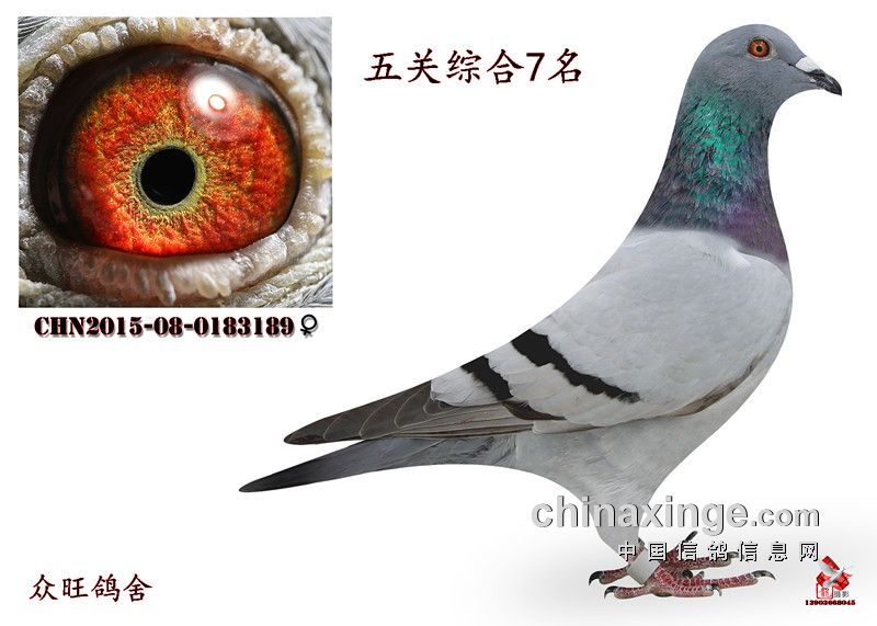 五关综合冠军; 众旺鸽舍 2015-08-0184036 雌 15776847345