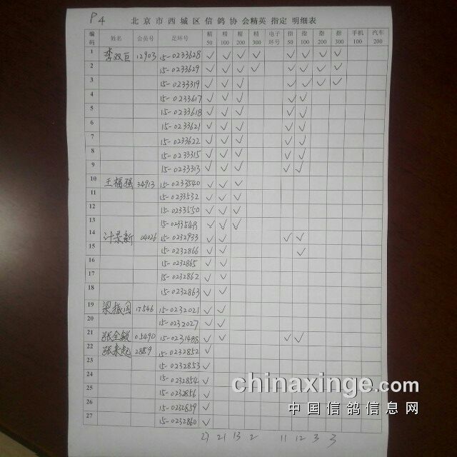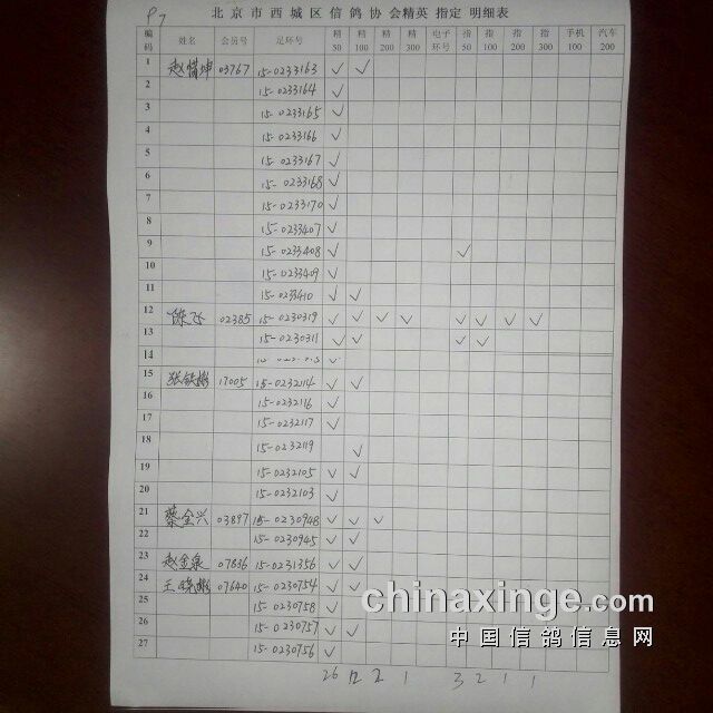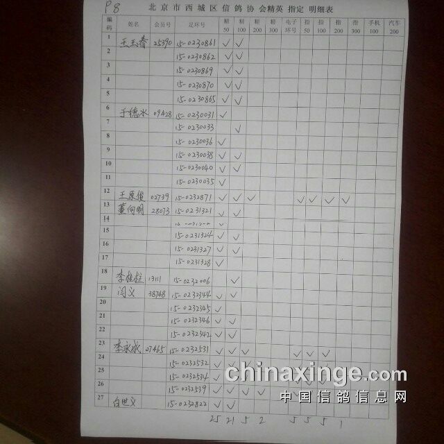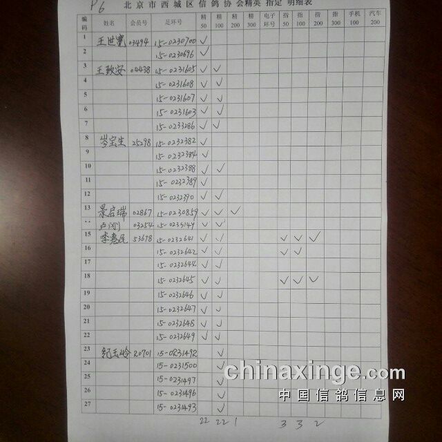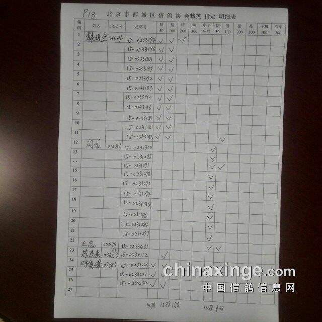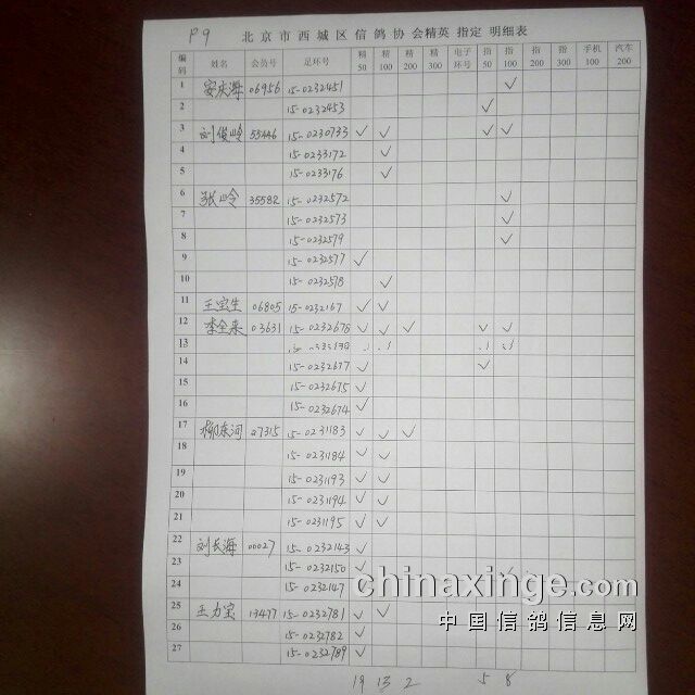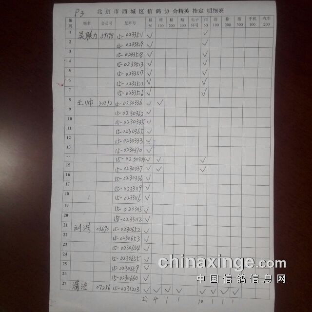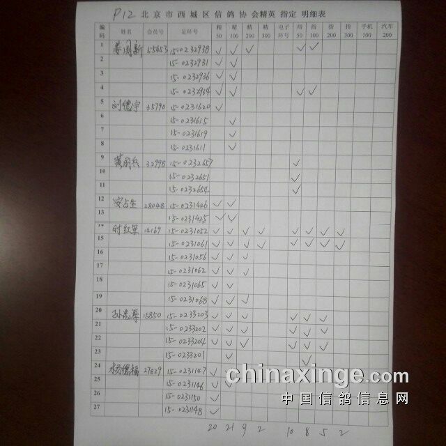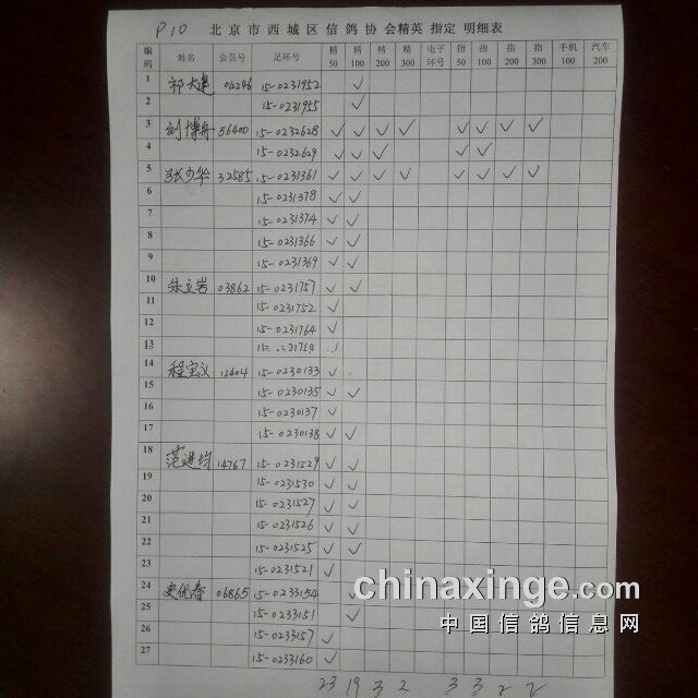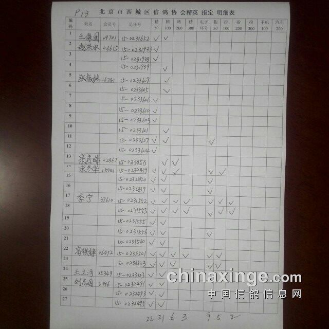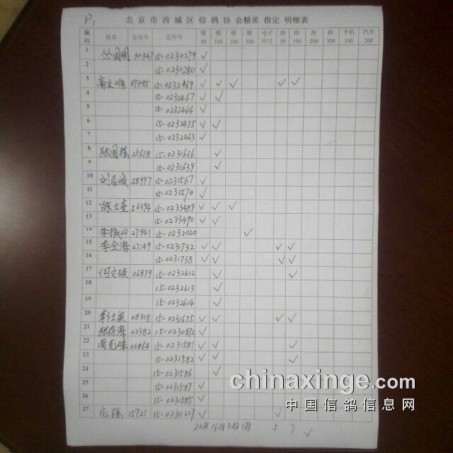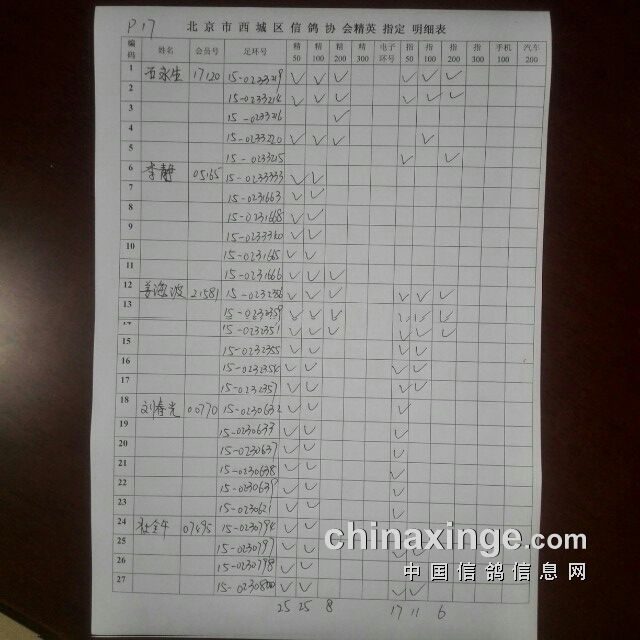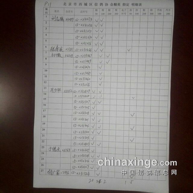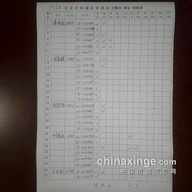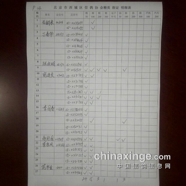 西城鸽会15年10.25日150元特比精英,指定明细照片