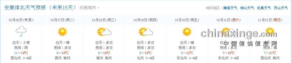 淮北市信鸽协会2015年秋350公里平原站;今日下午集鸽;望广大鸽友相互转告!带来不便敬请谅解!以下是沿途天气预报: