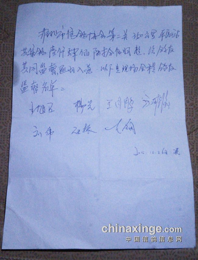 淮北市信鸽协会350公里集鸽花絮及鸽友监督签字单