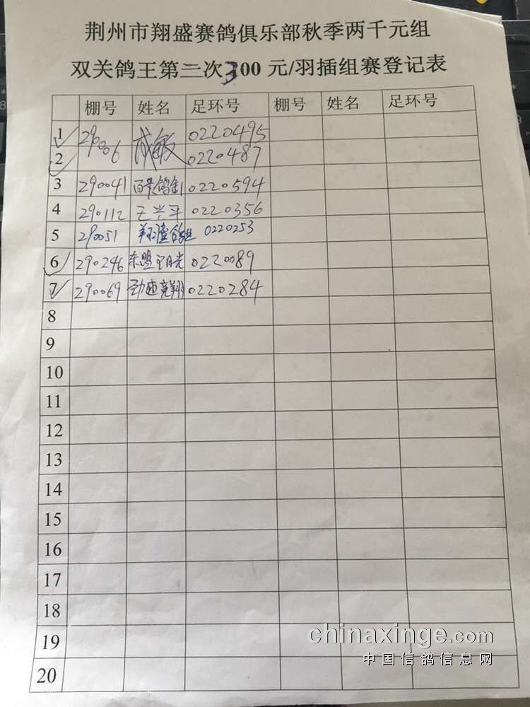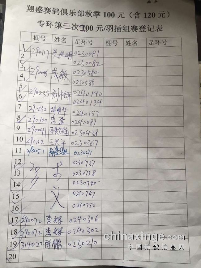2017年11月22日全国千公里联赛廊坊站比赛集鸽清单