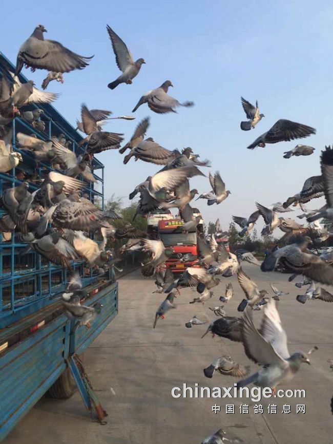 本次集鸽1111羽,8点整开笼,西北风2级,晴天