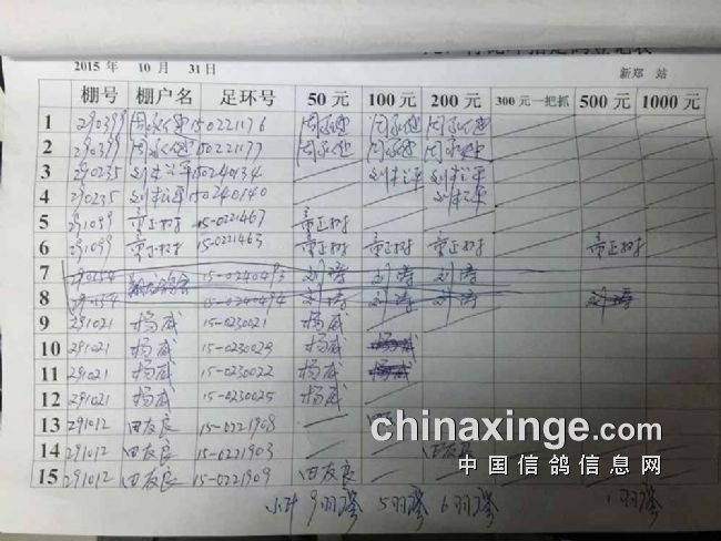 2017年11月26日480公里新郑站年度王中王比赛集鸽清单