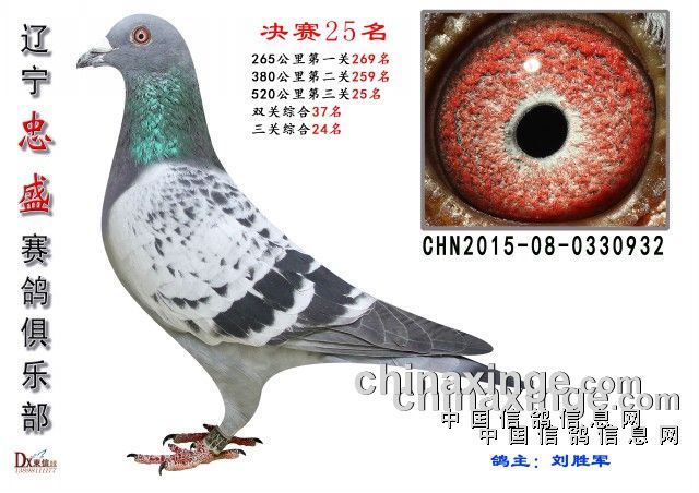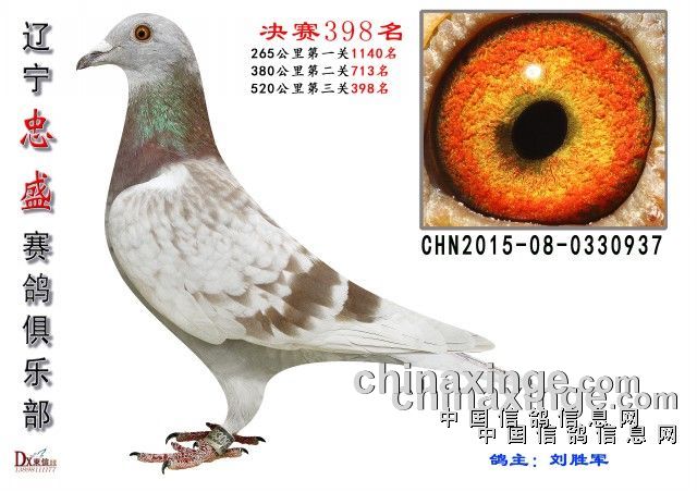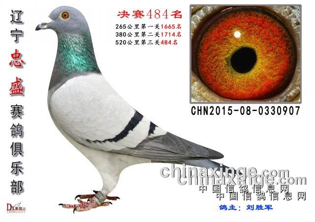 2015年在辽宁忠盛公棚520公里决赛484名【2015-08-0330907】 在辽宁忠盛公棚拍卖会鸽主自己拍回, 恭喜鸽主刘胜军