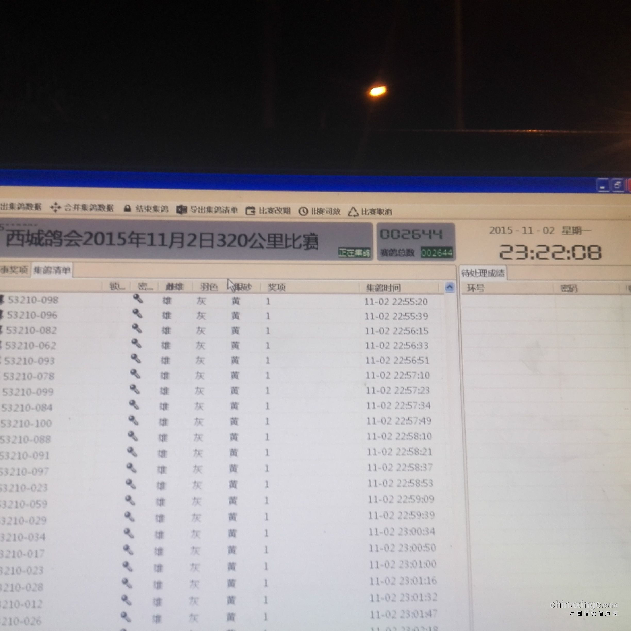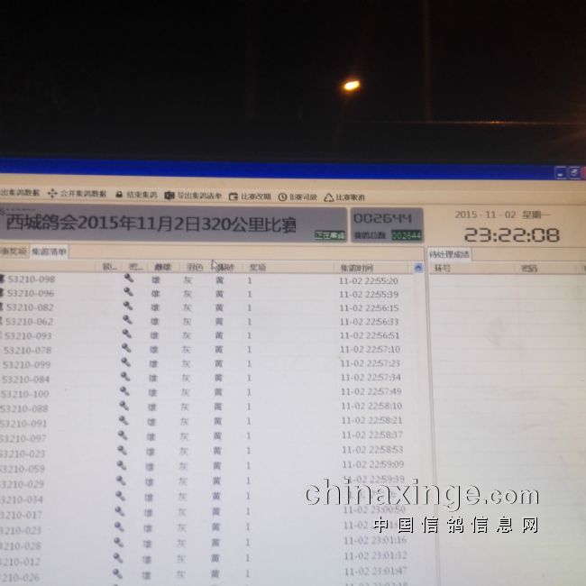 西城鸽会11.2日320公里集鸽照片