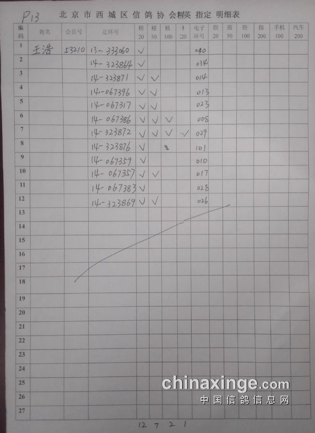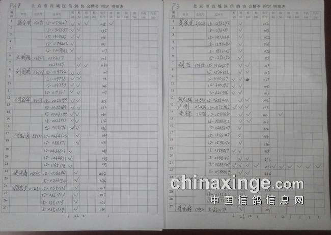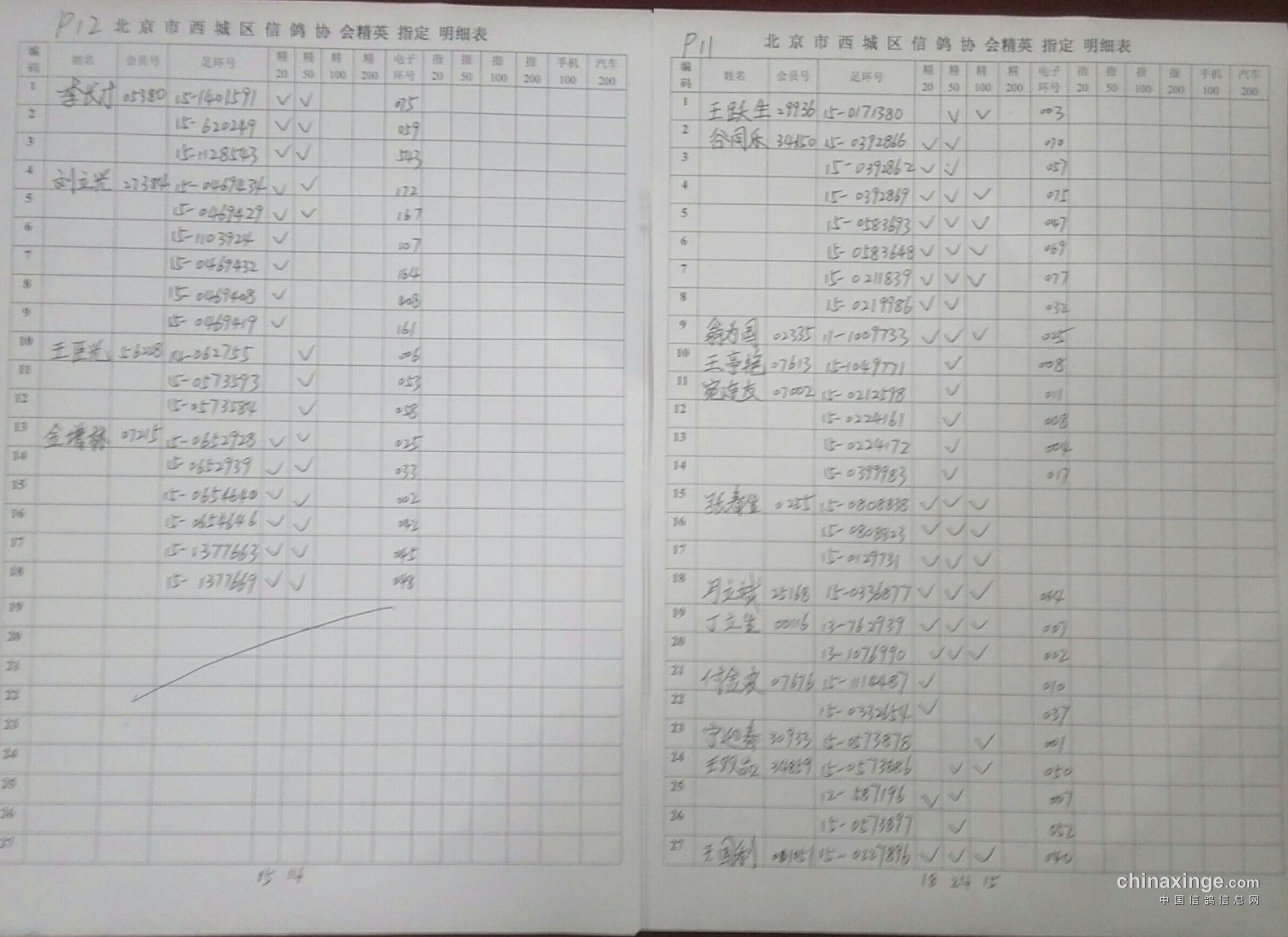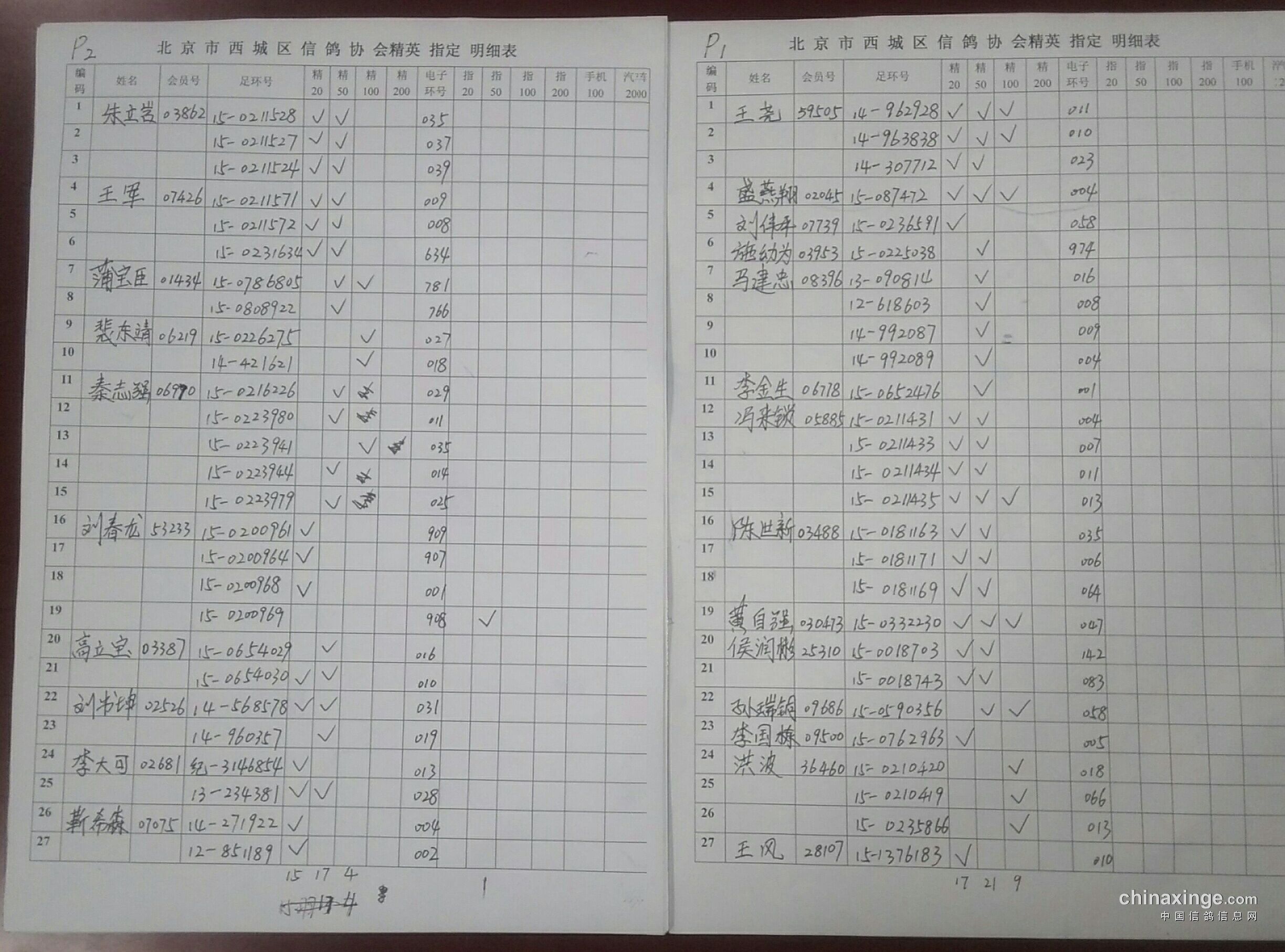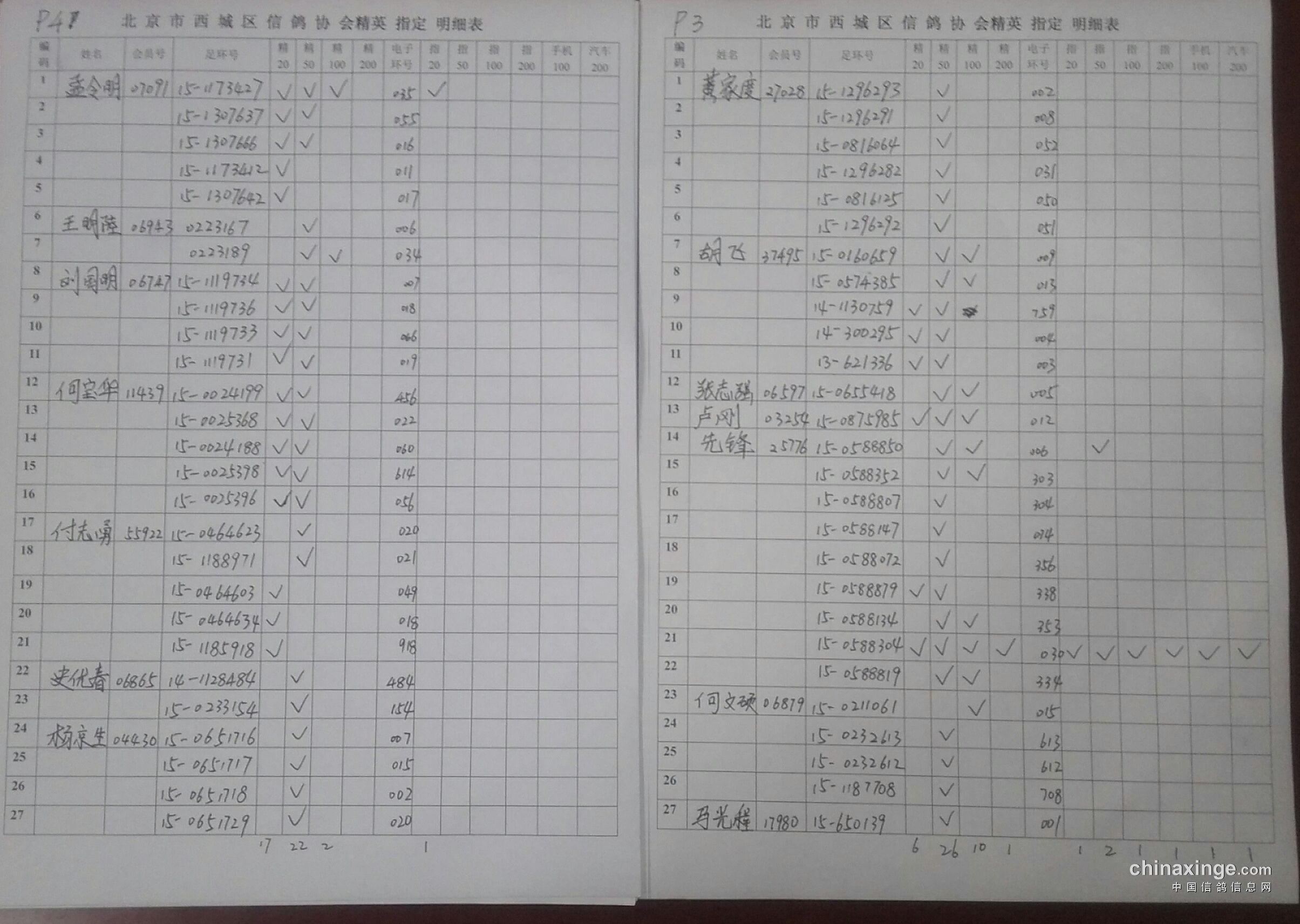 西城鸽会11月2日320公里比赛精英,指定明细表