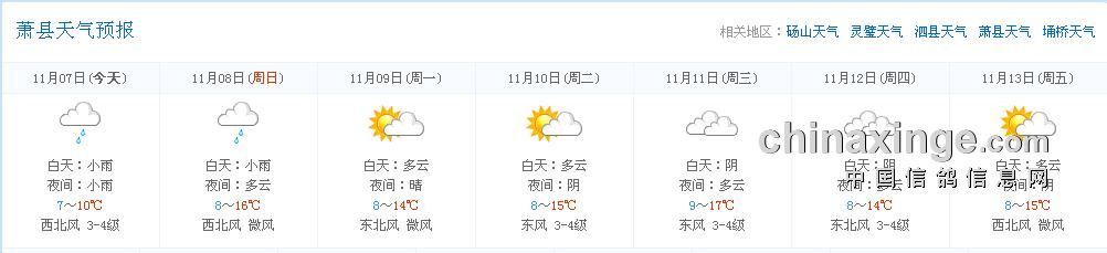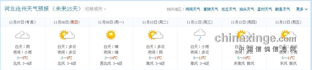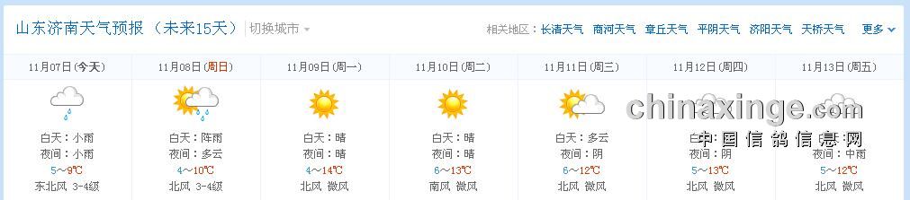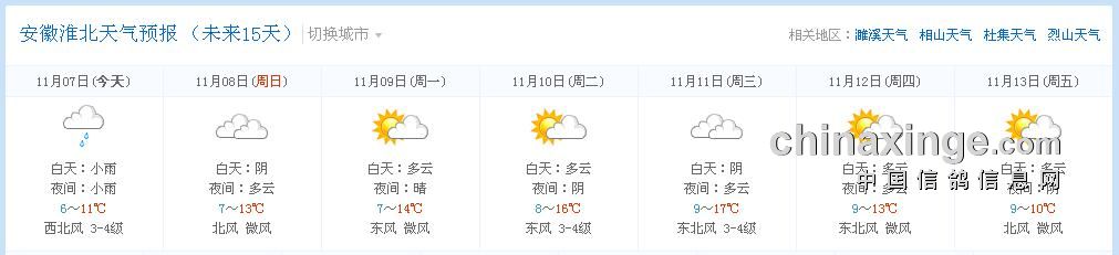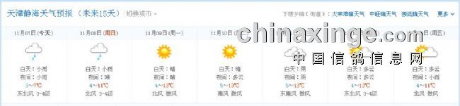 淮北市信鸽协会2015年秋季第二次550公里静海站,由于天气原因顺延一天;改为周日集鸽、周一放出;凡购买2015秋季大奖赛的会员,本站个人名下无论上笼多少羽赛鸽一律费用减半;未购大赛会员正常收费;集鸽所收费用全部用于本站奖金;运输费用由淮北市信鸽协会承担;以下是沿途天气预报: