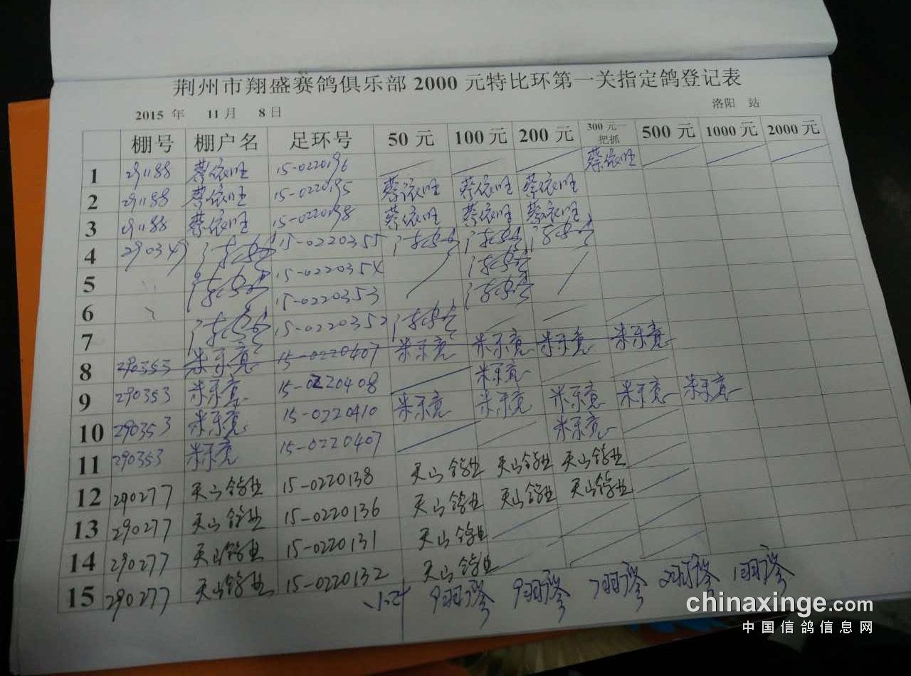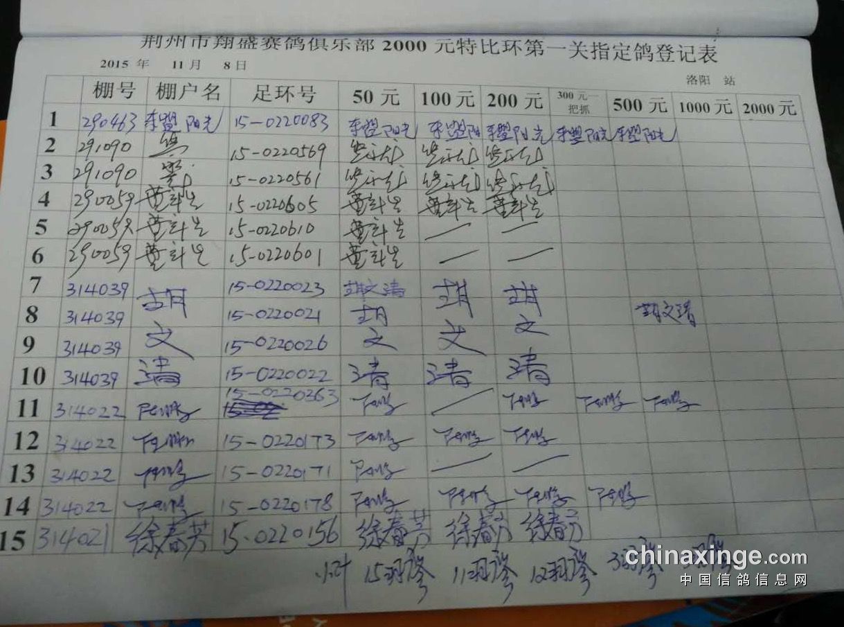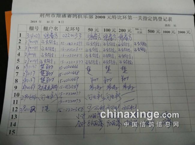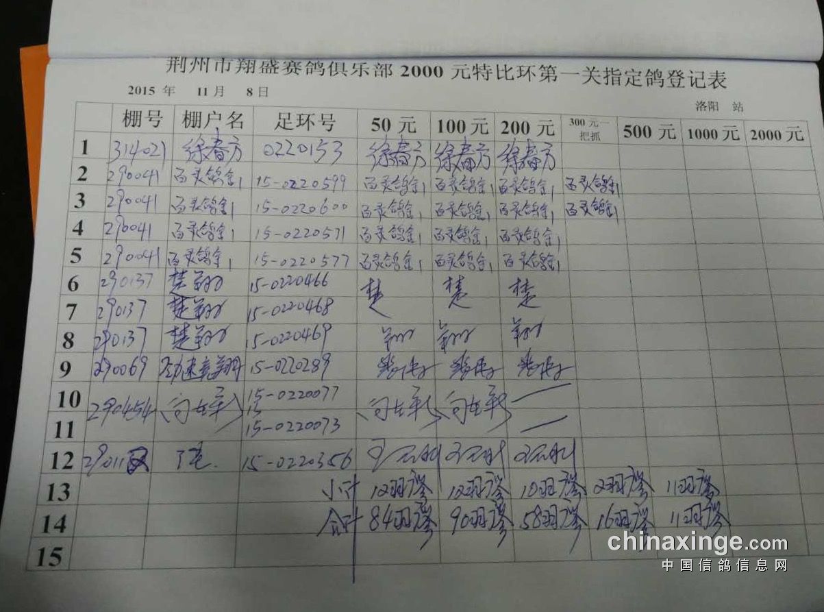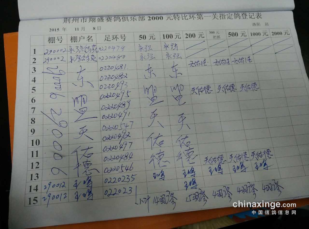 2017年11月26日480公里新郑站年度王中王比赛集鸽清单
