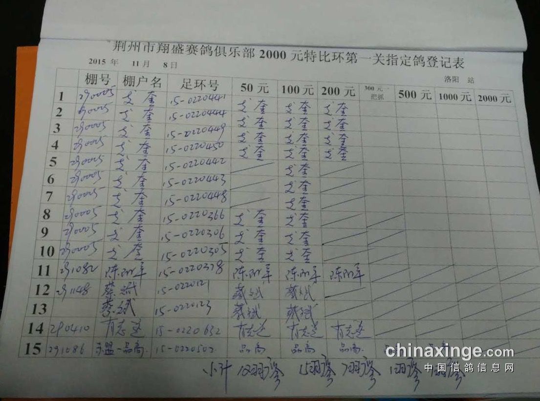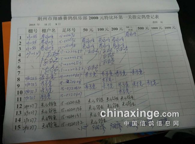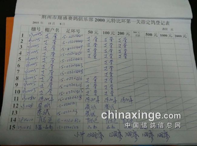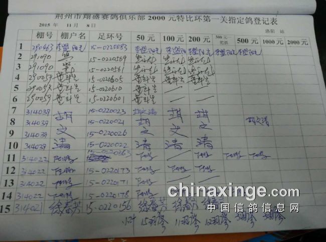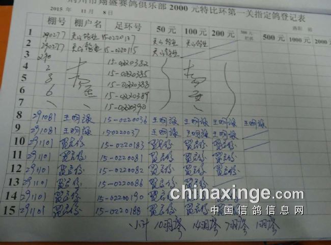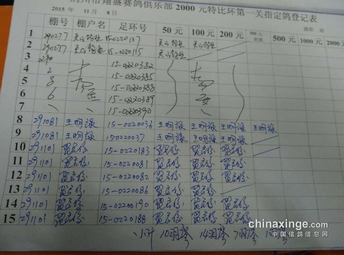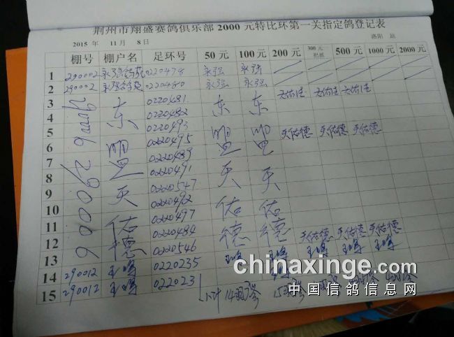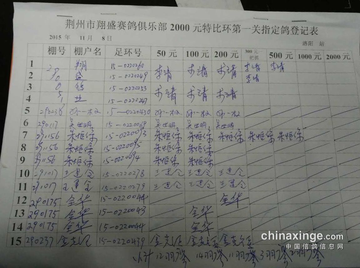 2017年11月22日全国千公里联赛廊坊站比赛集鸽清单