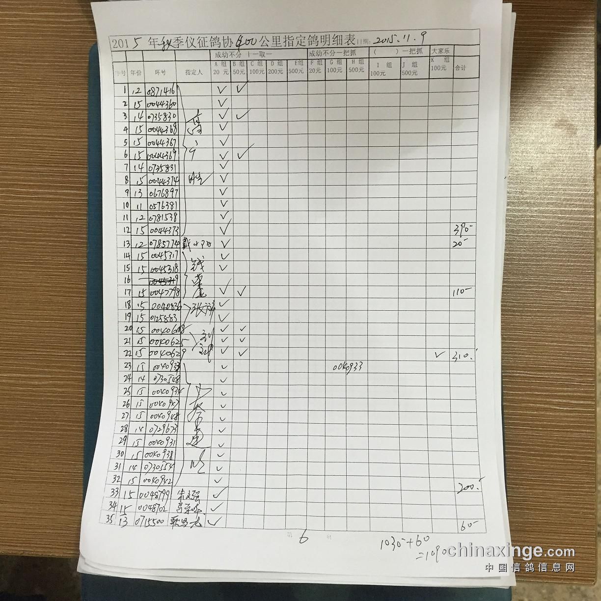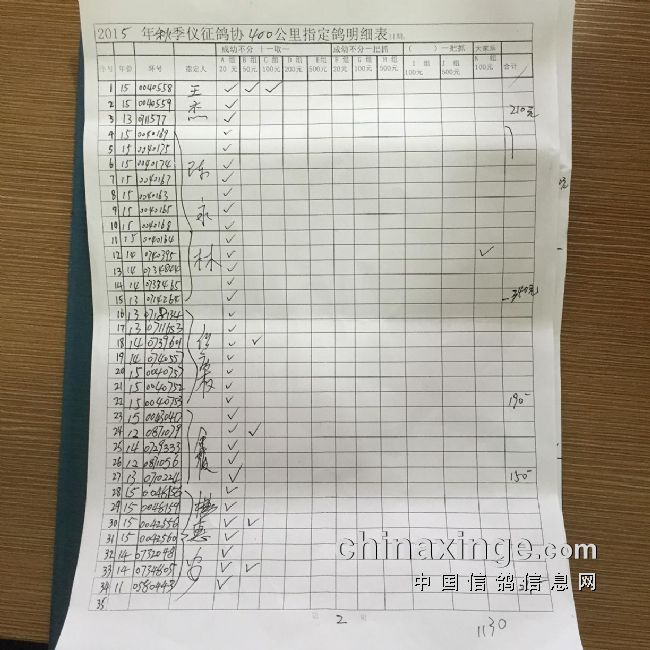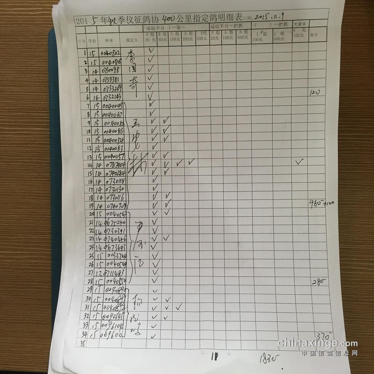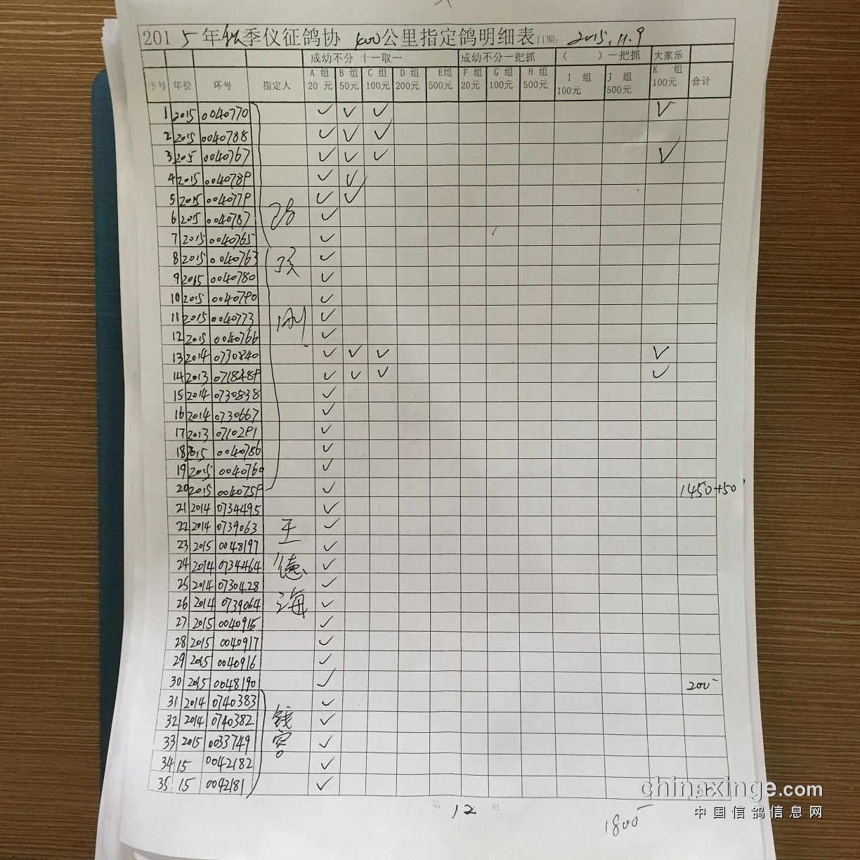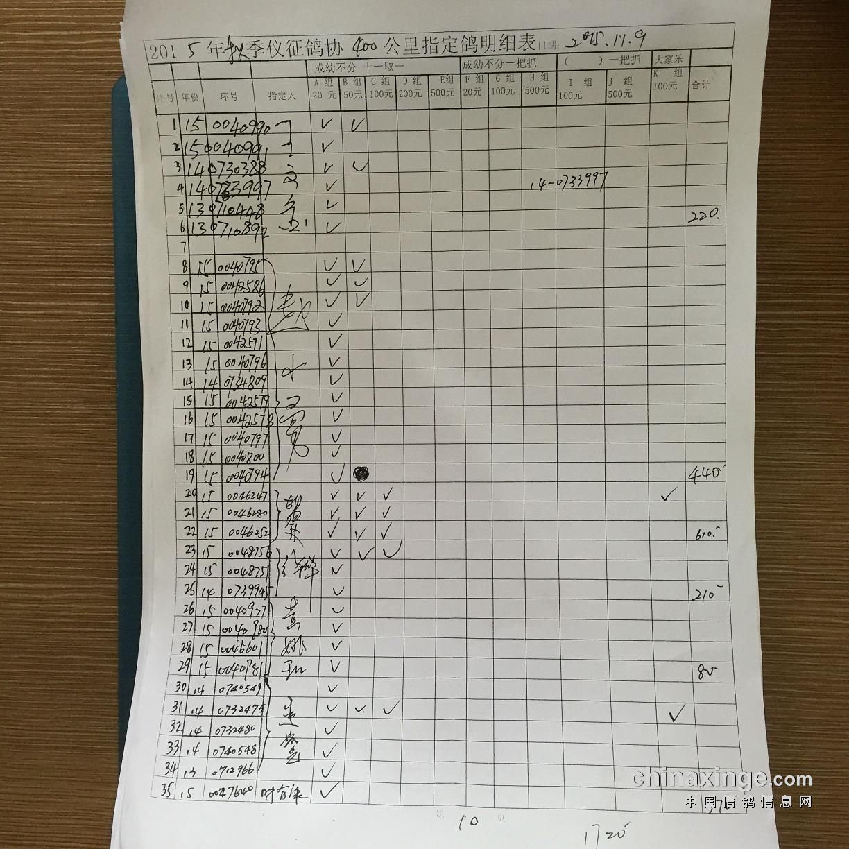 明细:A组20元(11取1)指定鸽412羽,录取38名,1名~37名各奖200.00,38名奖100.00
