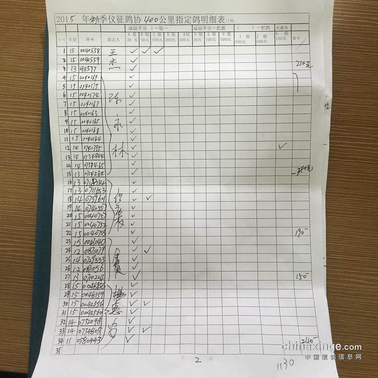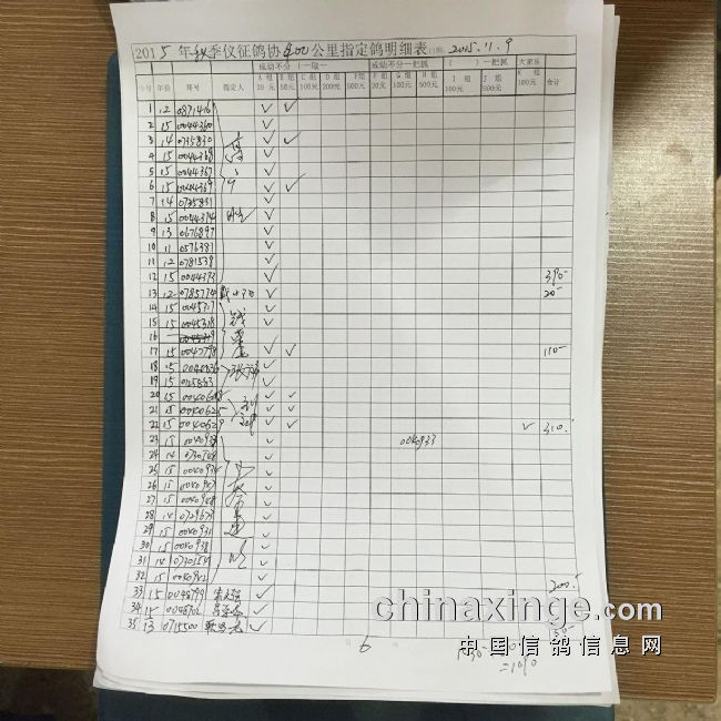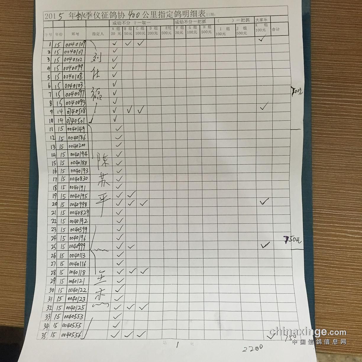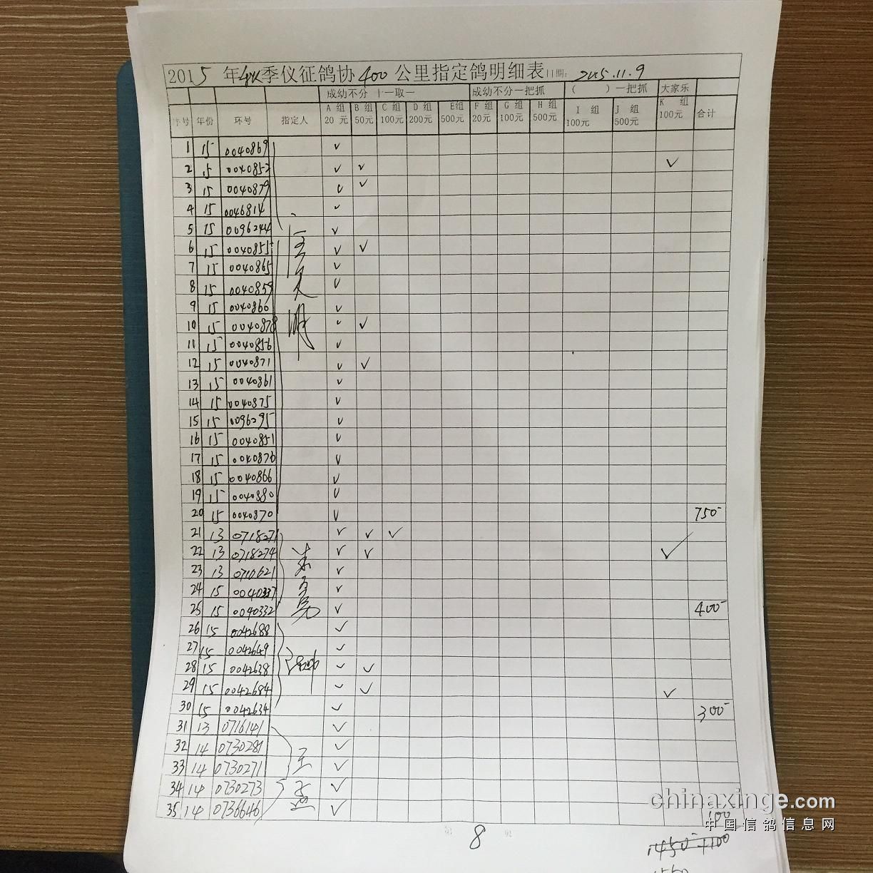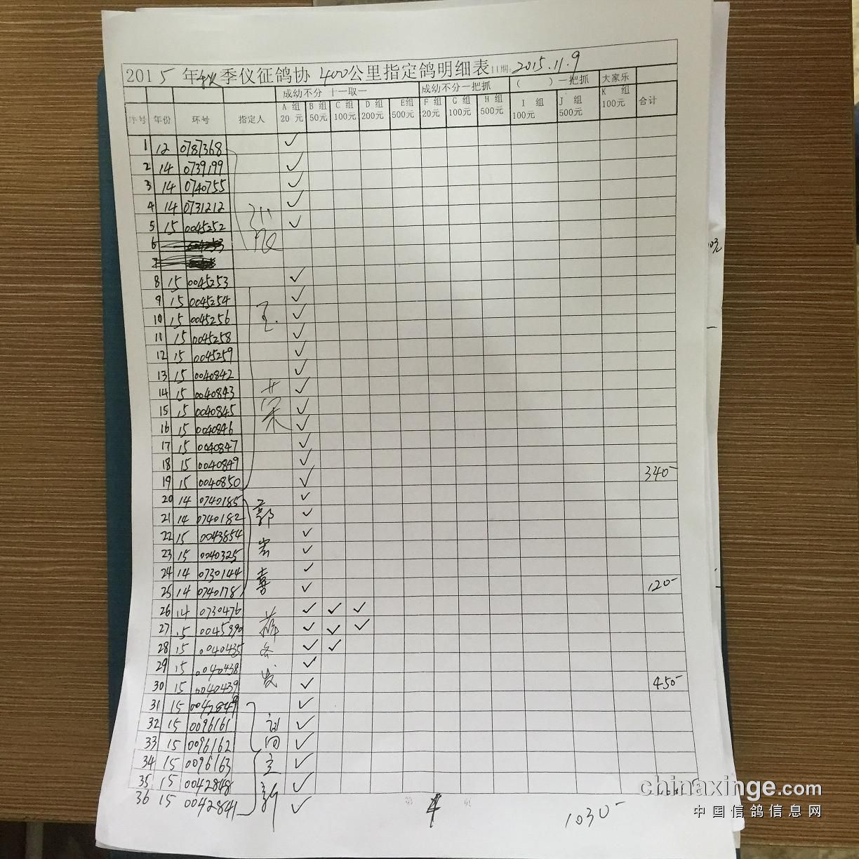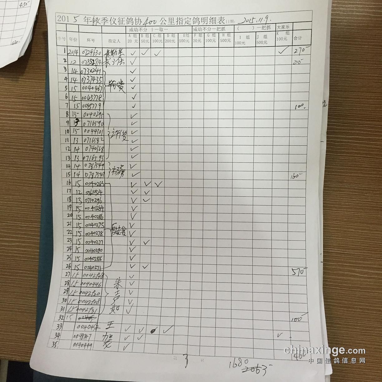 明细:A组20元(11取1)指定鸽412羽,录取38名,1名~37名各奖200.00,38名奖100.00