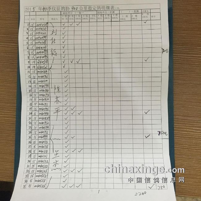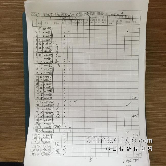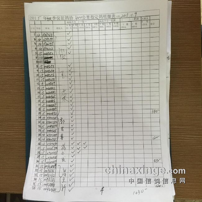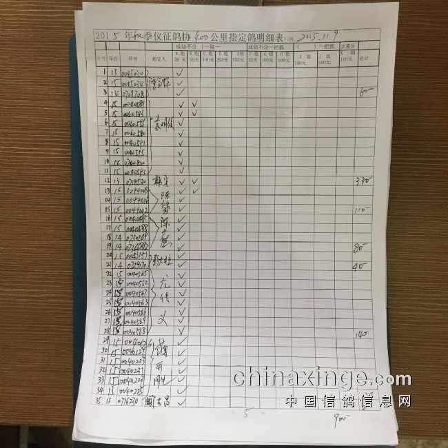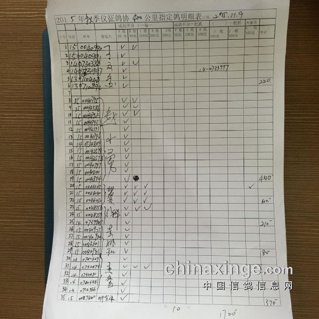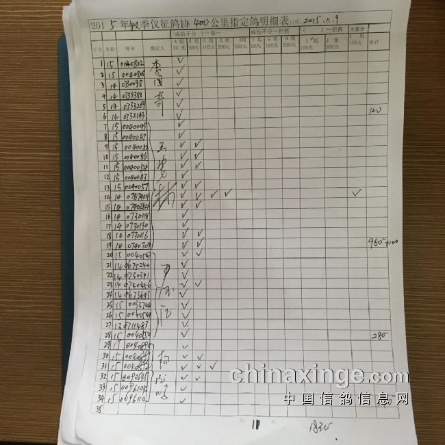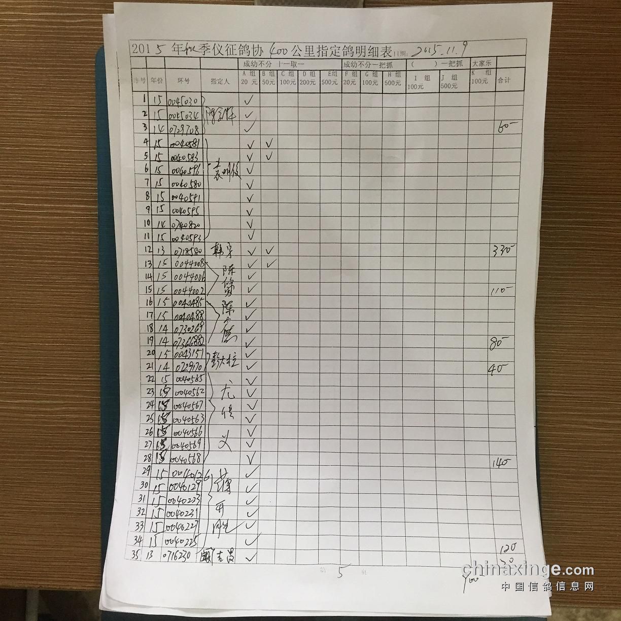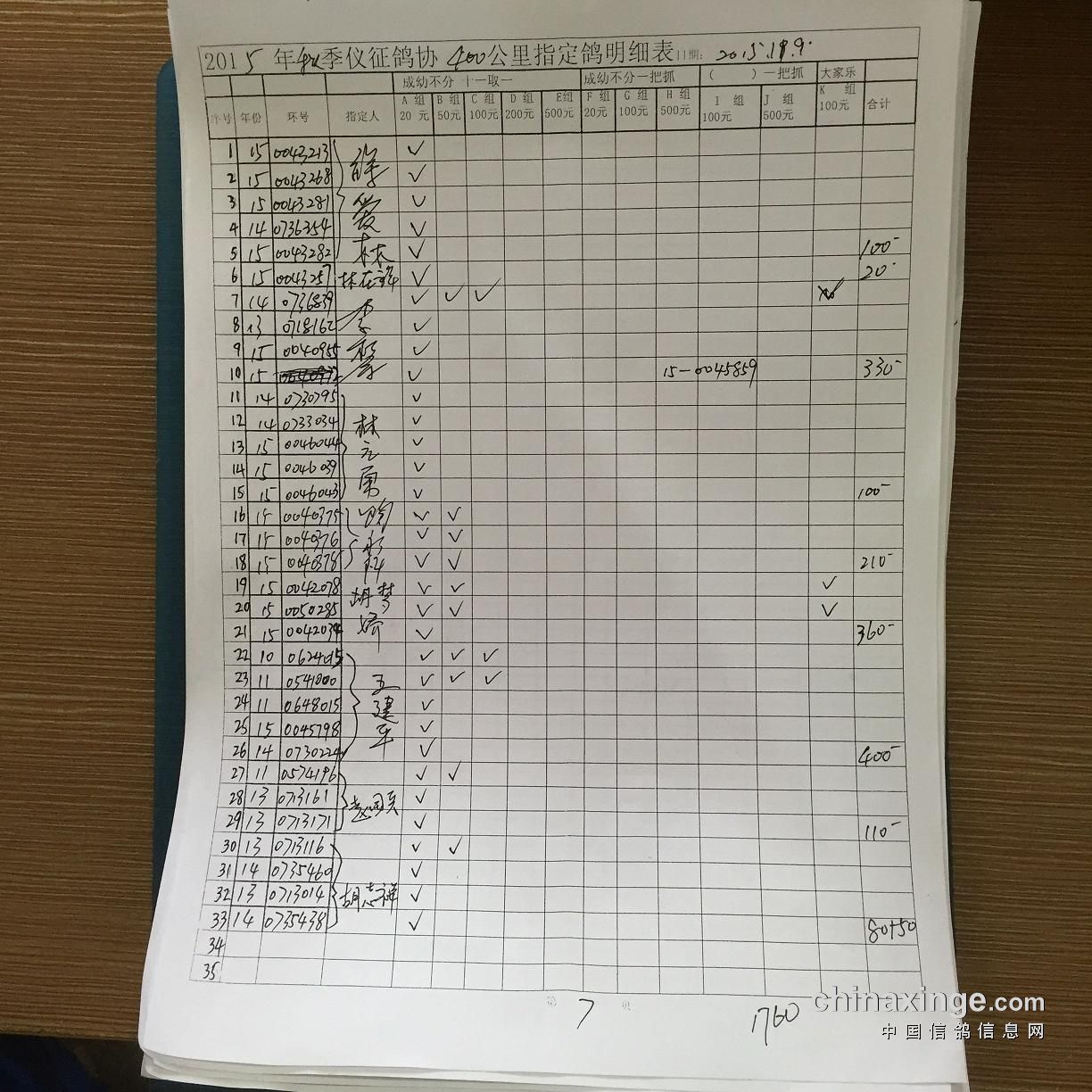 明细:A组20元(11取1)指定鸽412羽,录取38名,1名~37名各奖200.00,38名奖100.00