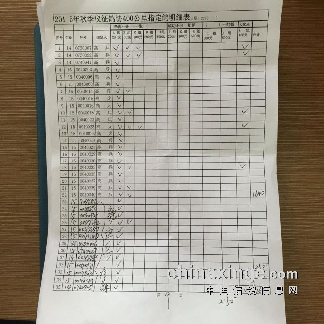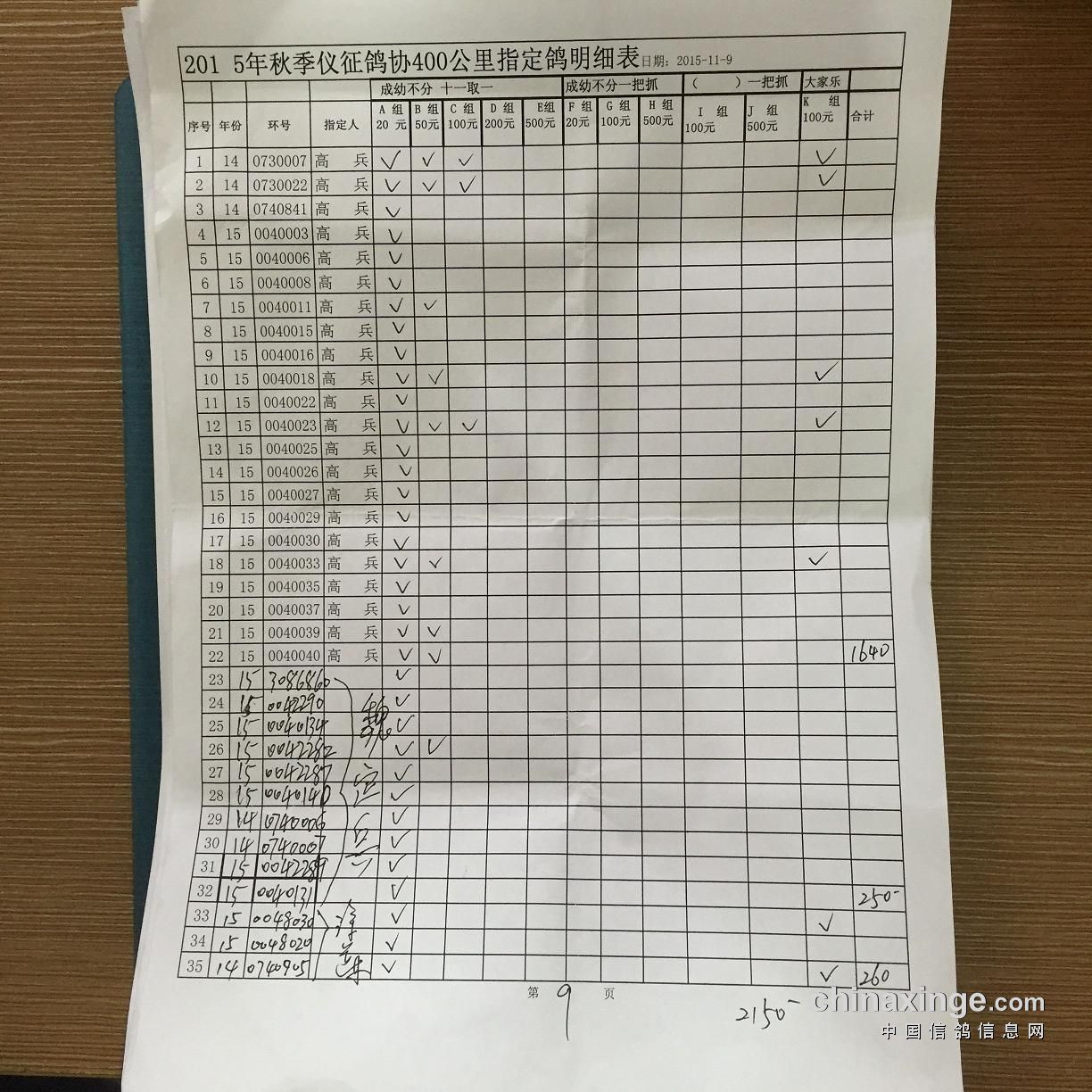 B组50元(11取1)指定鸽92羽,录取9名,1名~8名各奖500.00;9名奖200.00