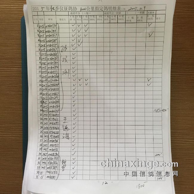 C组100元(11取1)指定鸽30羽,录取3名, 1名奖~2名各奖1000.00; 3名奖700.00