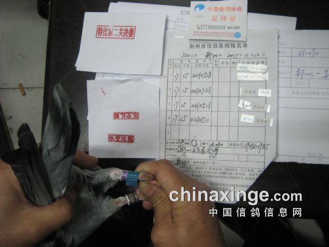 2015年秋11月13日郑州比赛当天归巢鸽验鸽照片