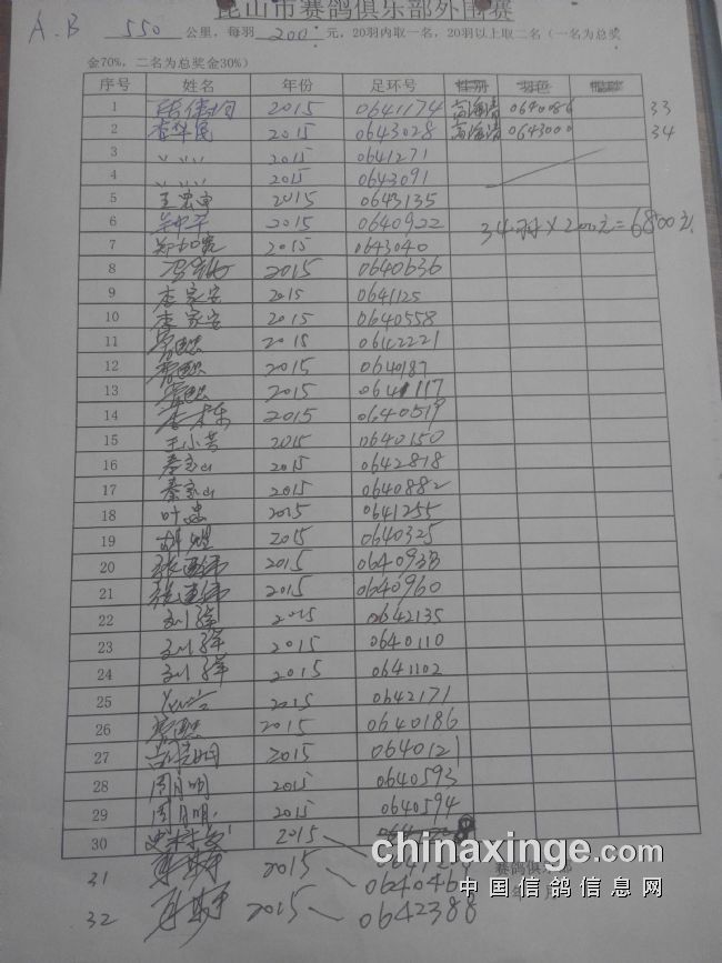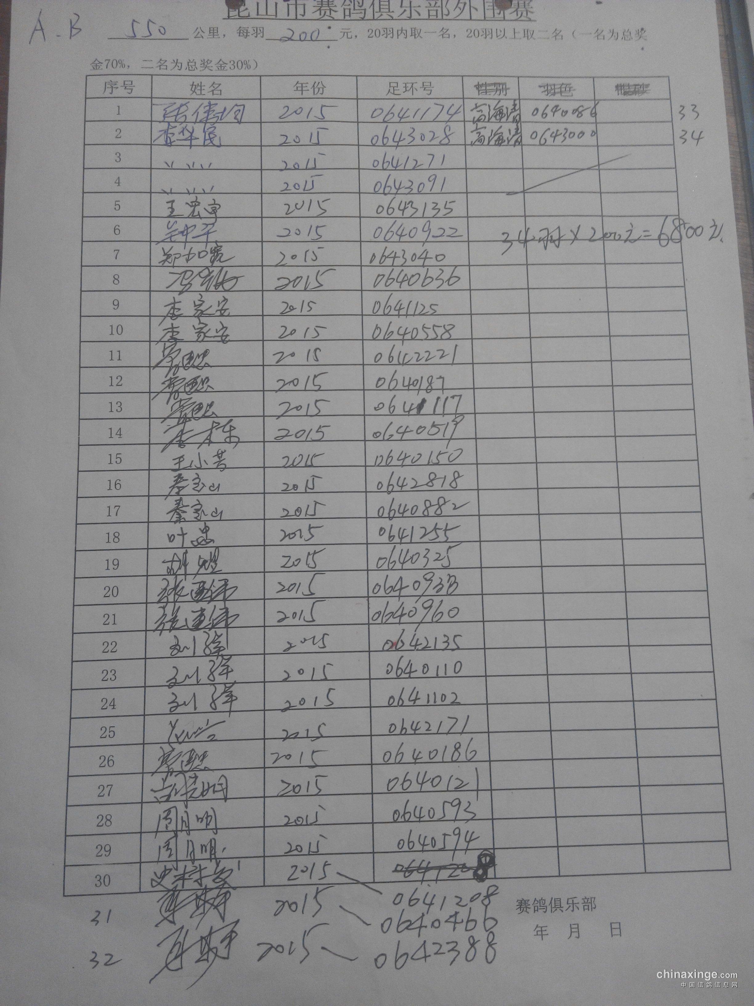 集鸽总羽数:1658羽,其中精英赛:534羽,A组557羽,B组:483