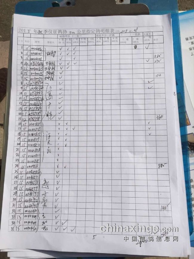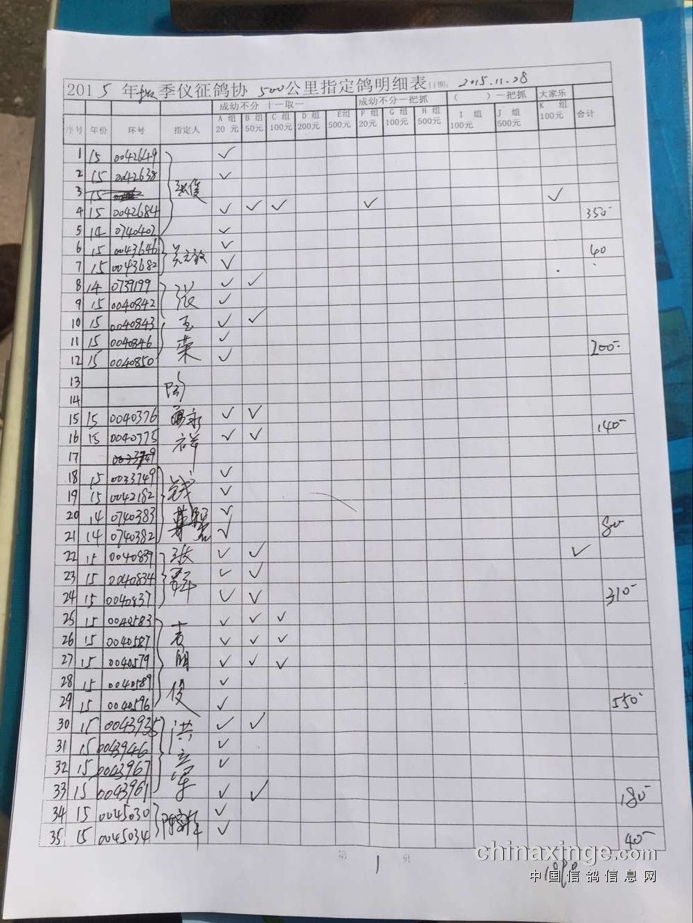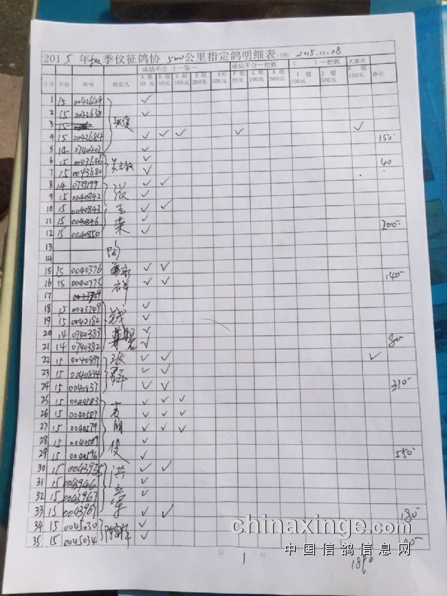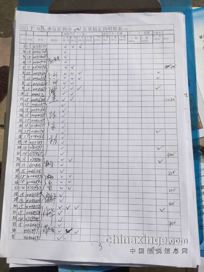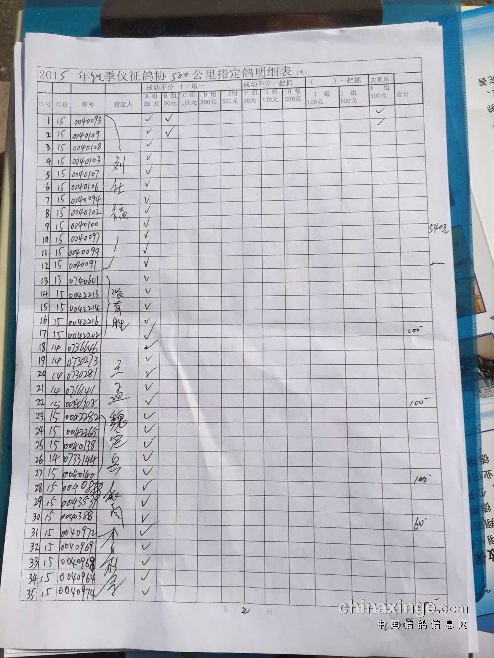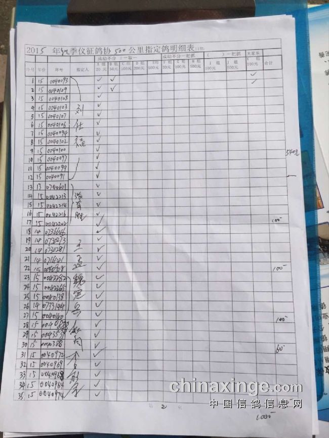 C组100元(11取1)指定鸽33羽,录取3名, 1名奖~3名各奖1000.00;