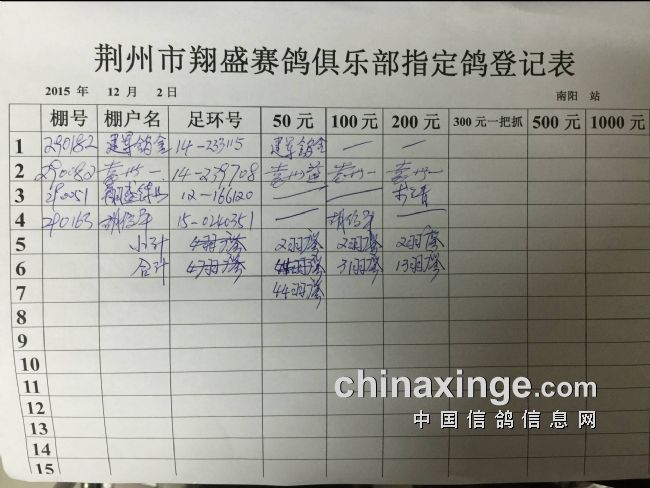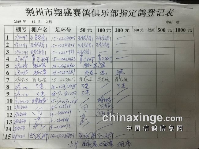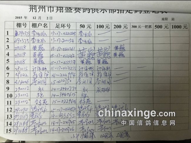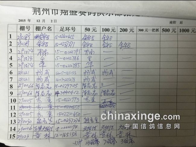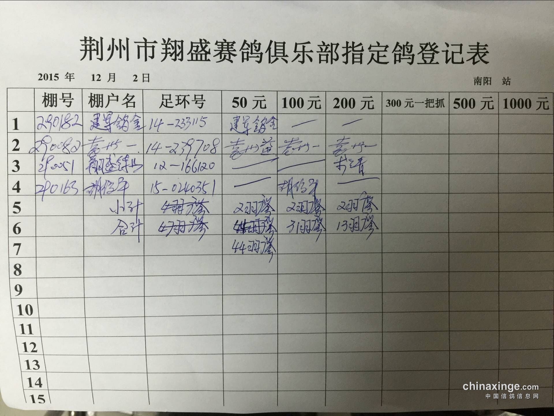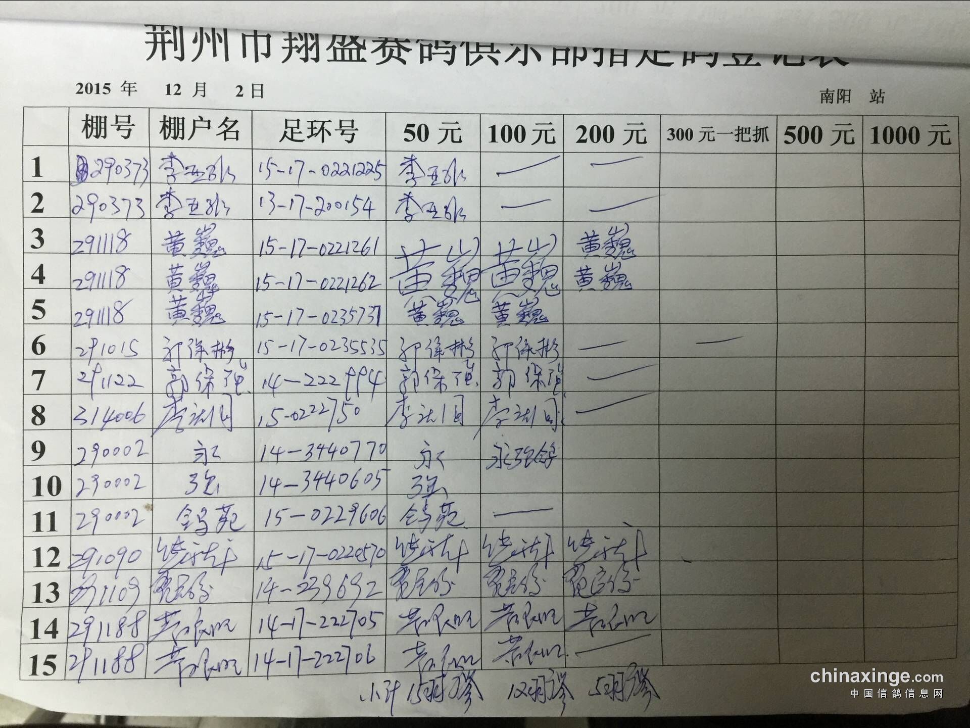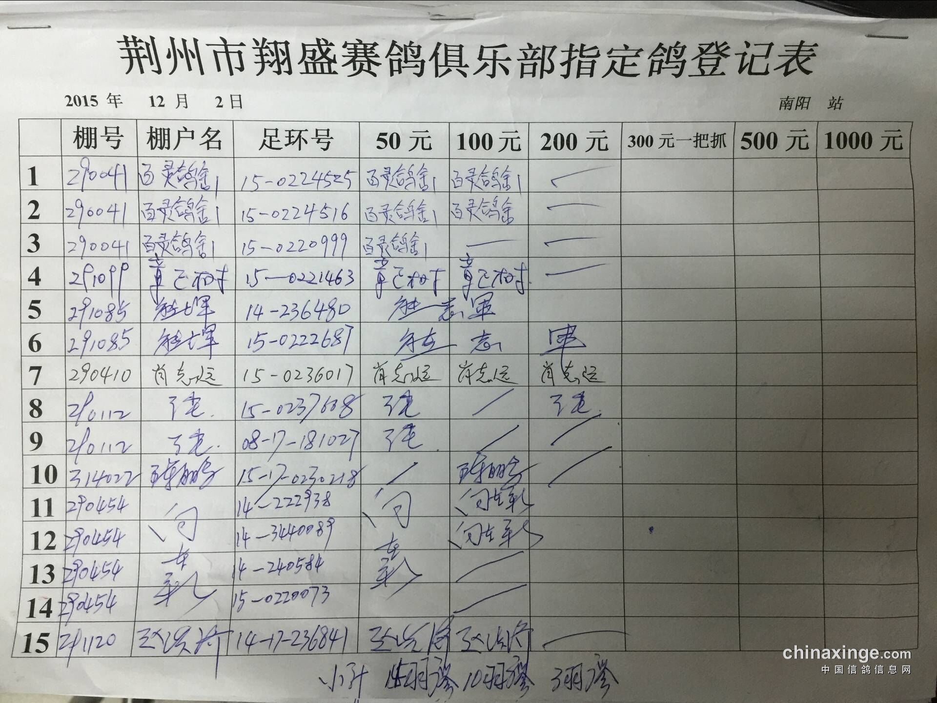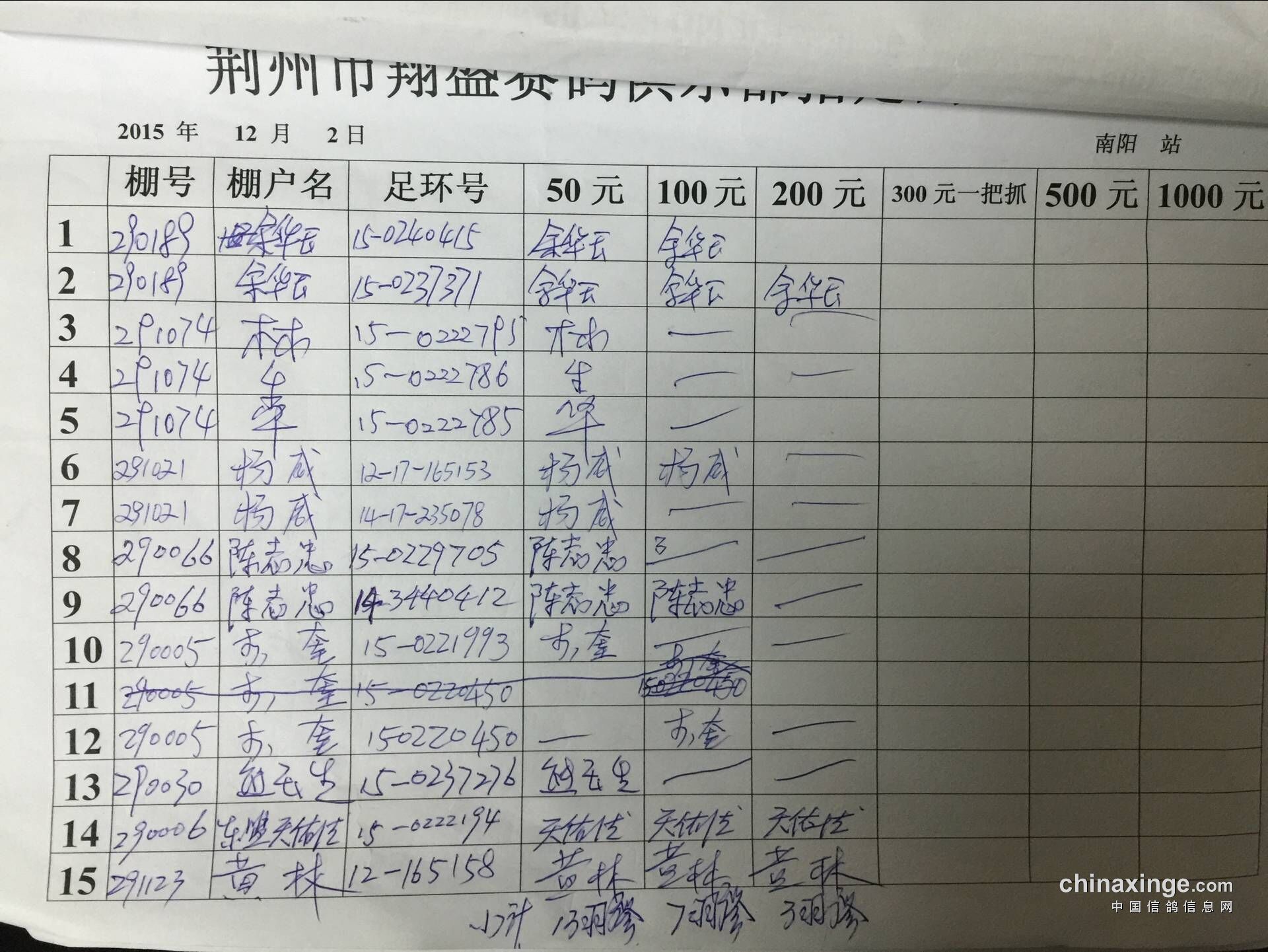 2015年秋12月2日秋南阳300公里指定鸽明细