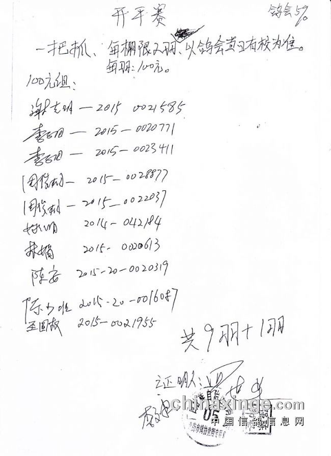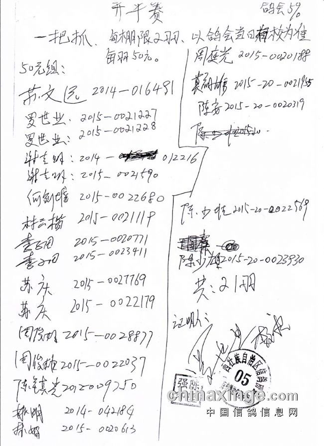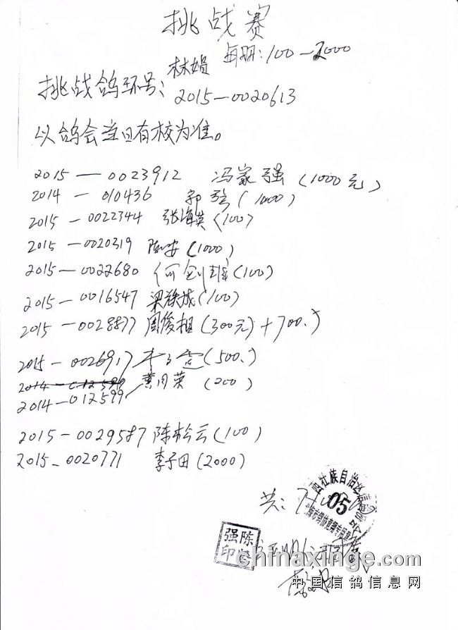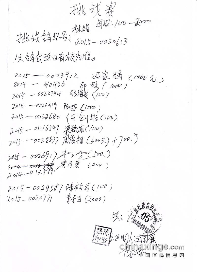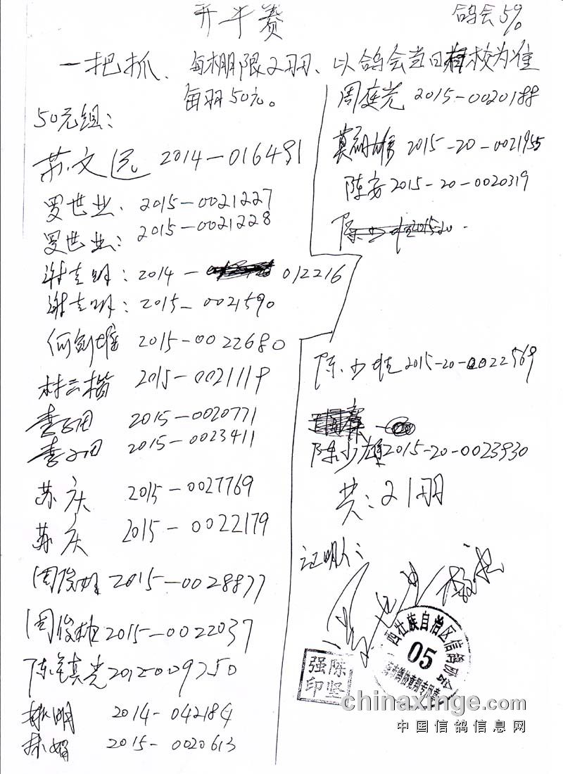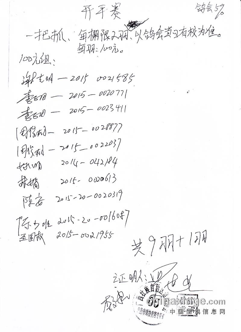 广西北海信鸽协会2015年下半年三关赛第三关开平站指定鸽名单