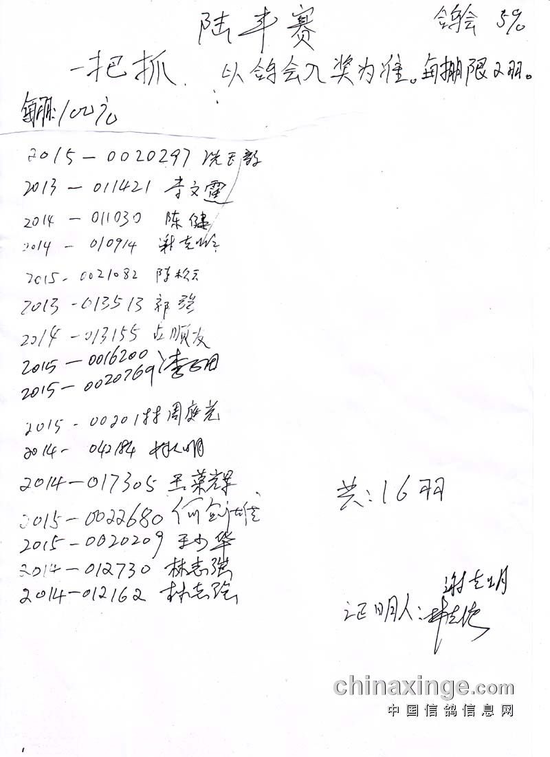 广西北海信鸽协会2015年下半年700公里陆丰站指定鸽名单