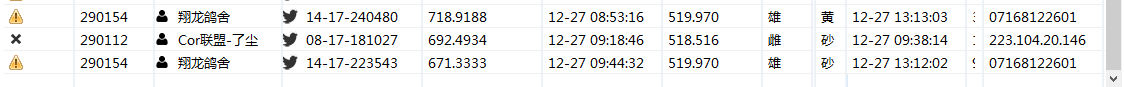 2017年11月26日480公里新郑站年度王中王比赛集鸽清单