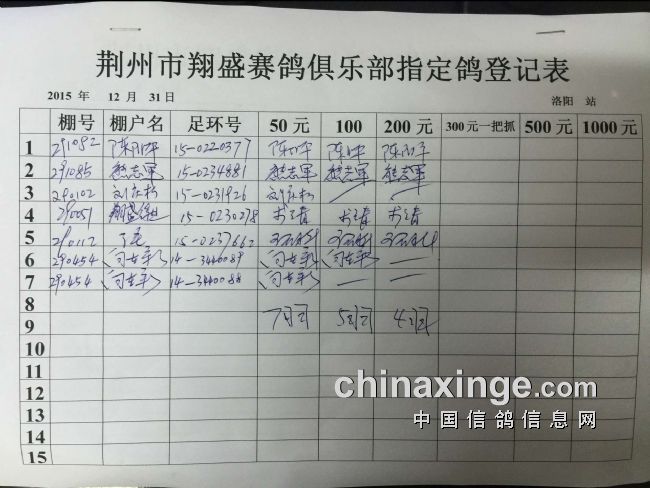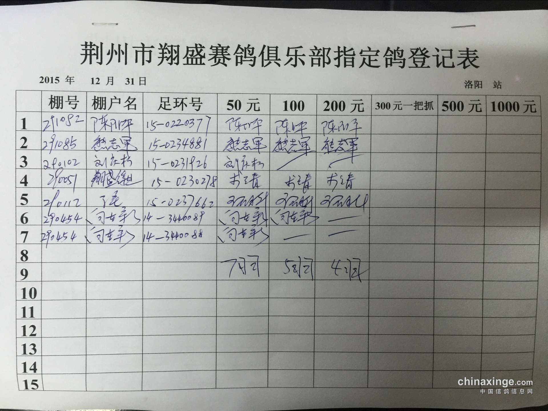 2015秋12月31日两省五地幼鸽对抗赛指定鸽明细
