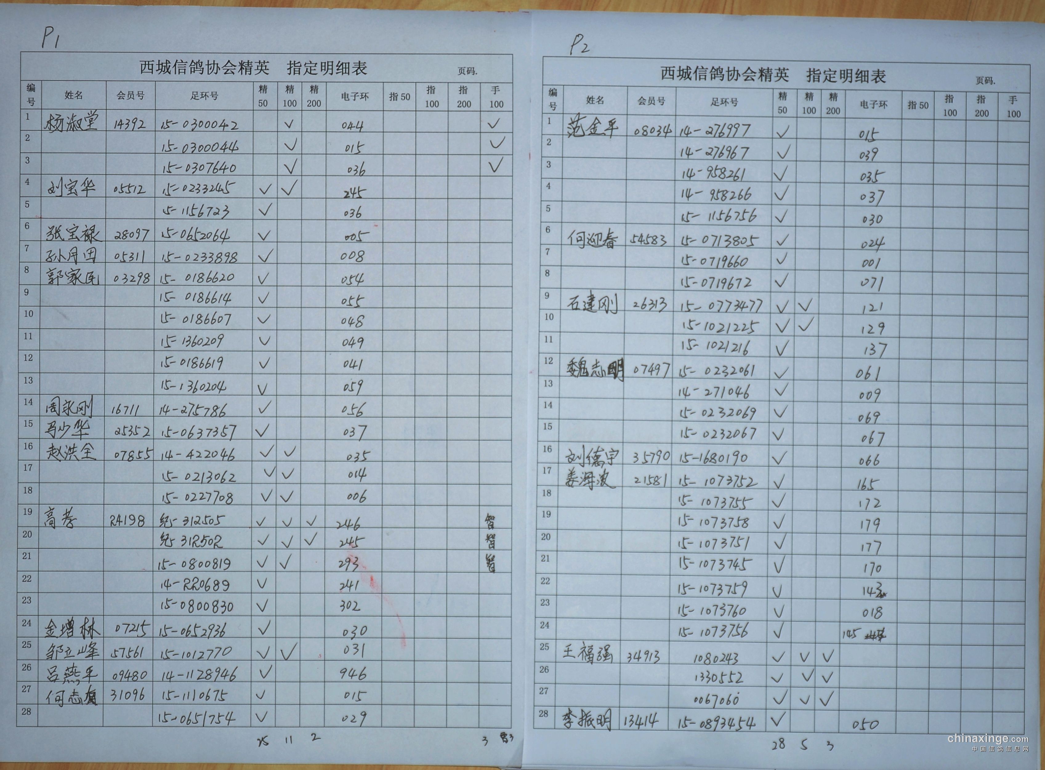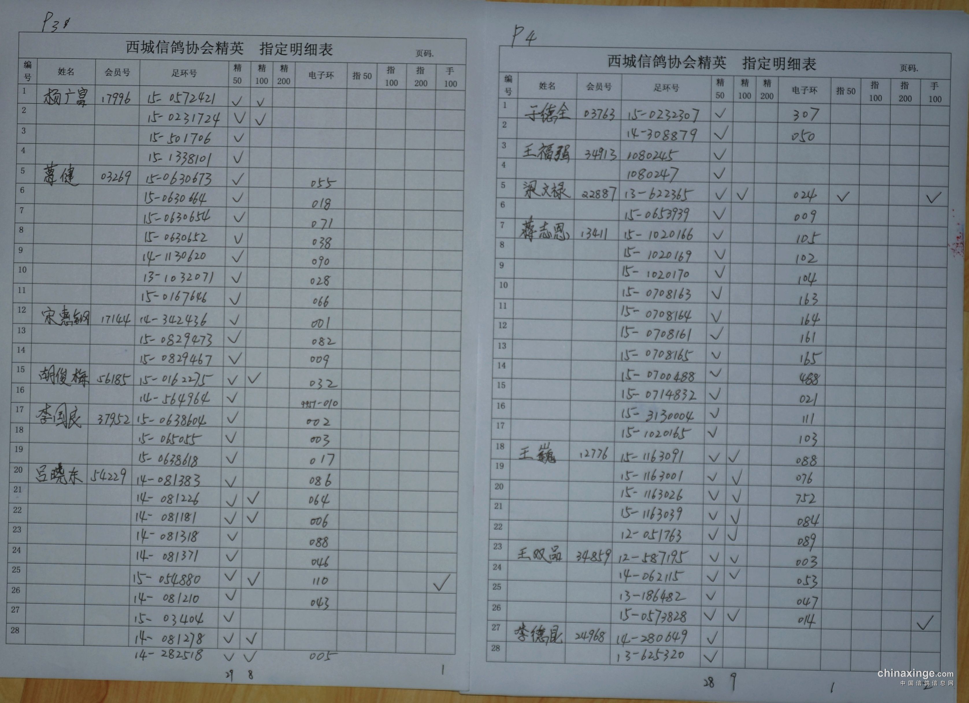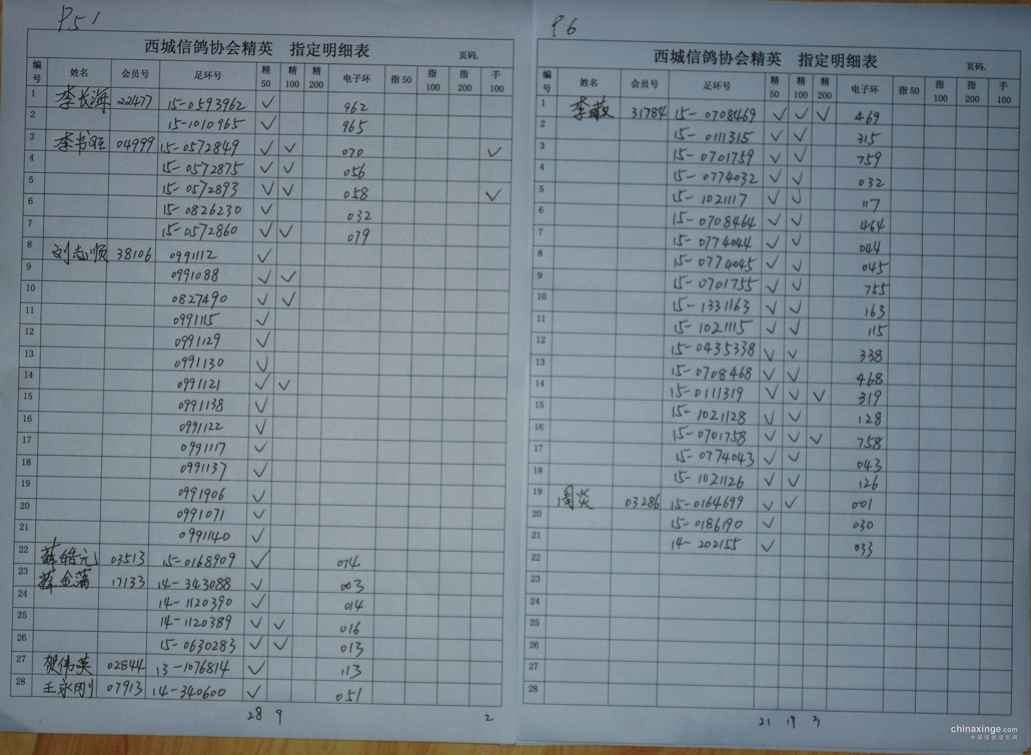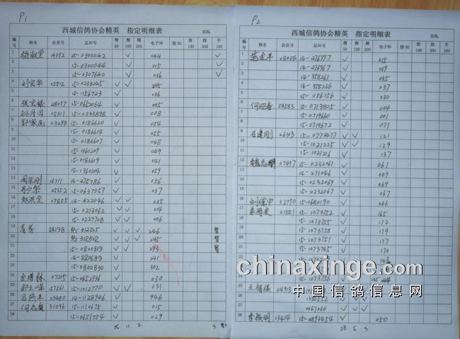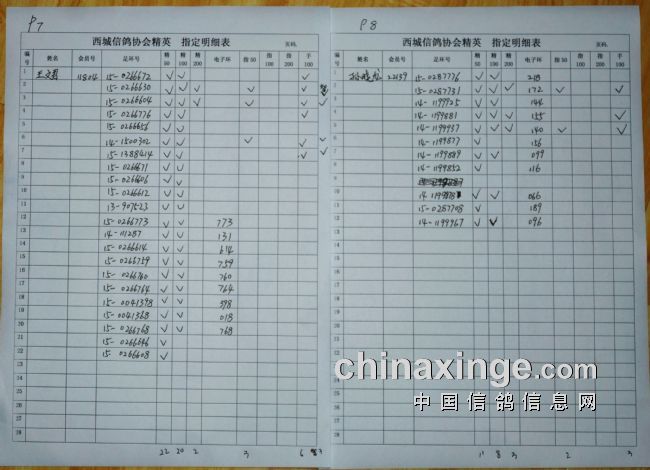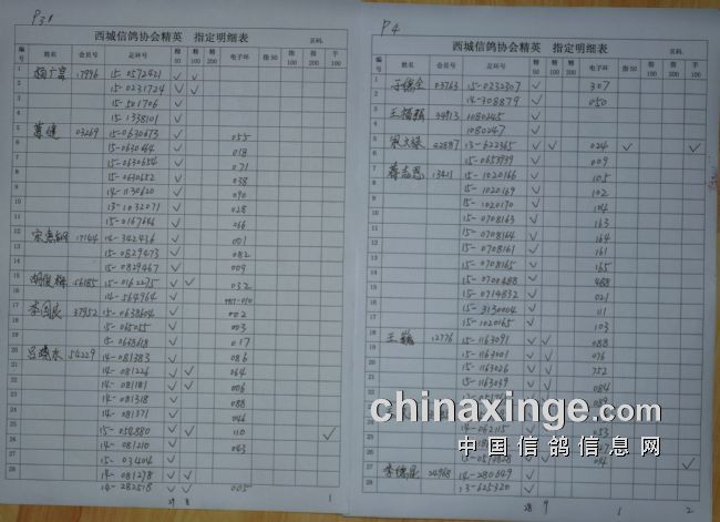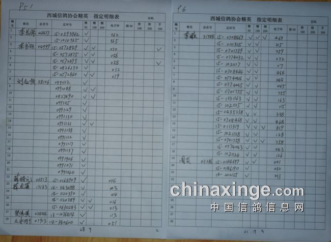 西城鸽会1月8日320公里精英,指定明细表