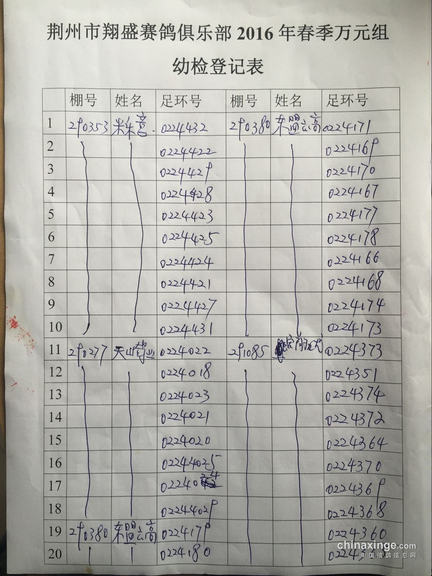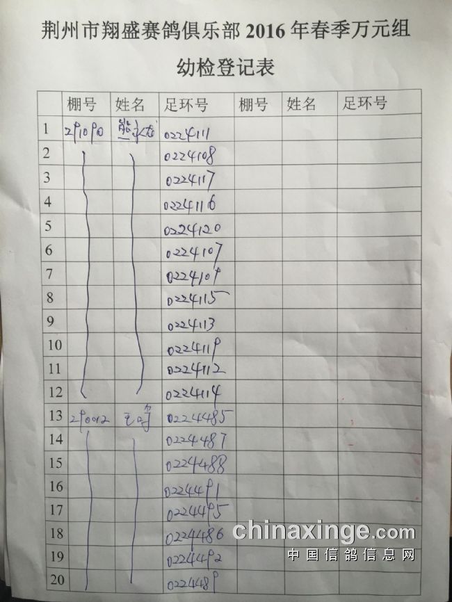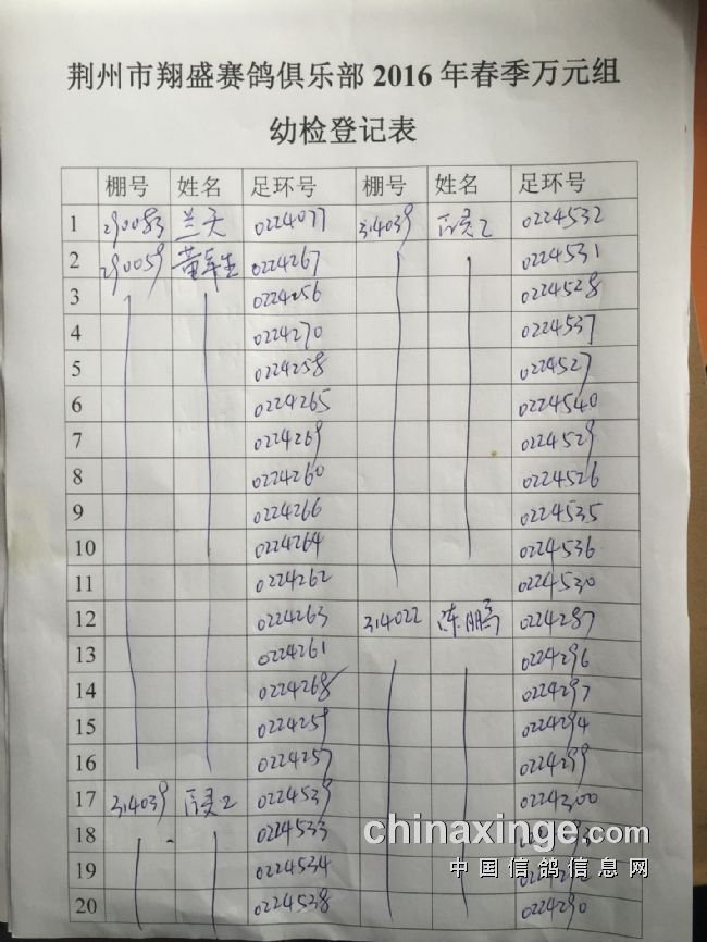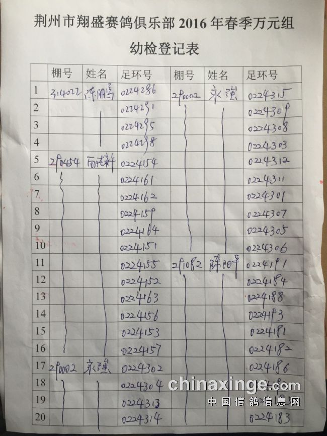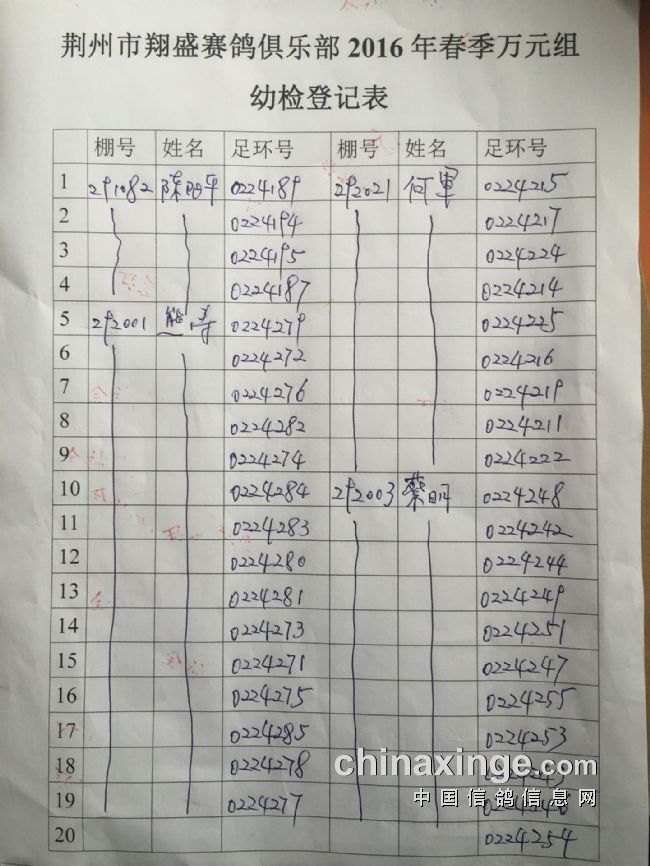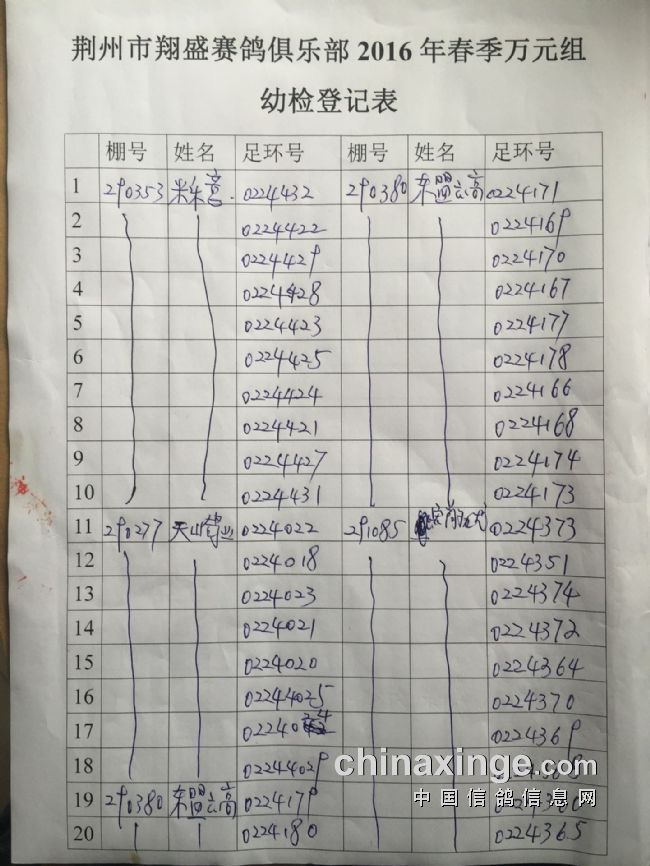 2017年11月22日全国千公里联赛廊坊站比赛集鸽清单