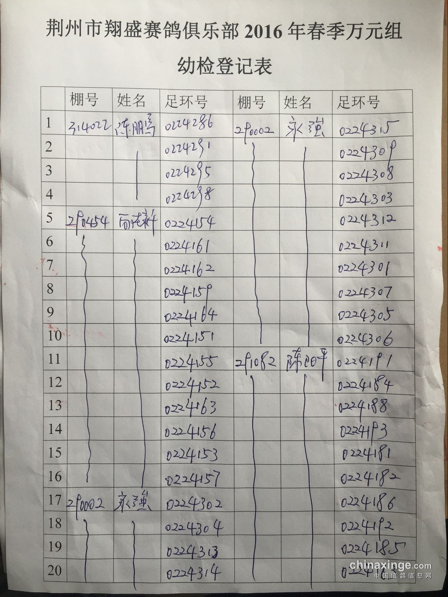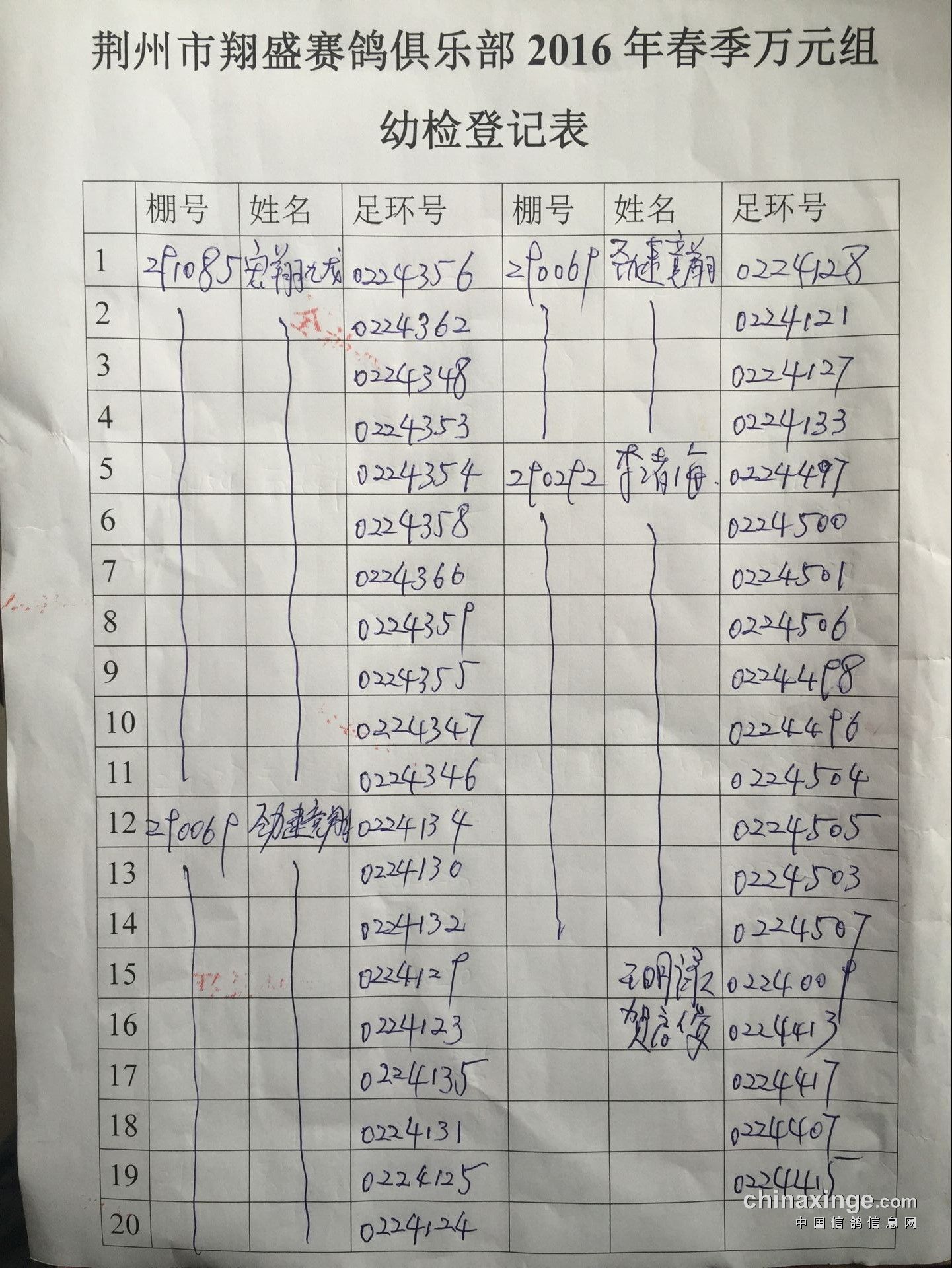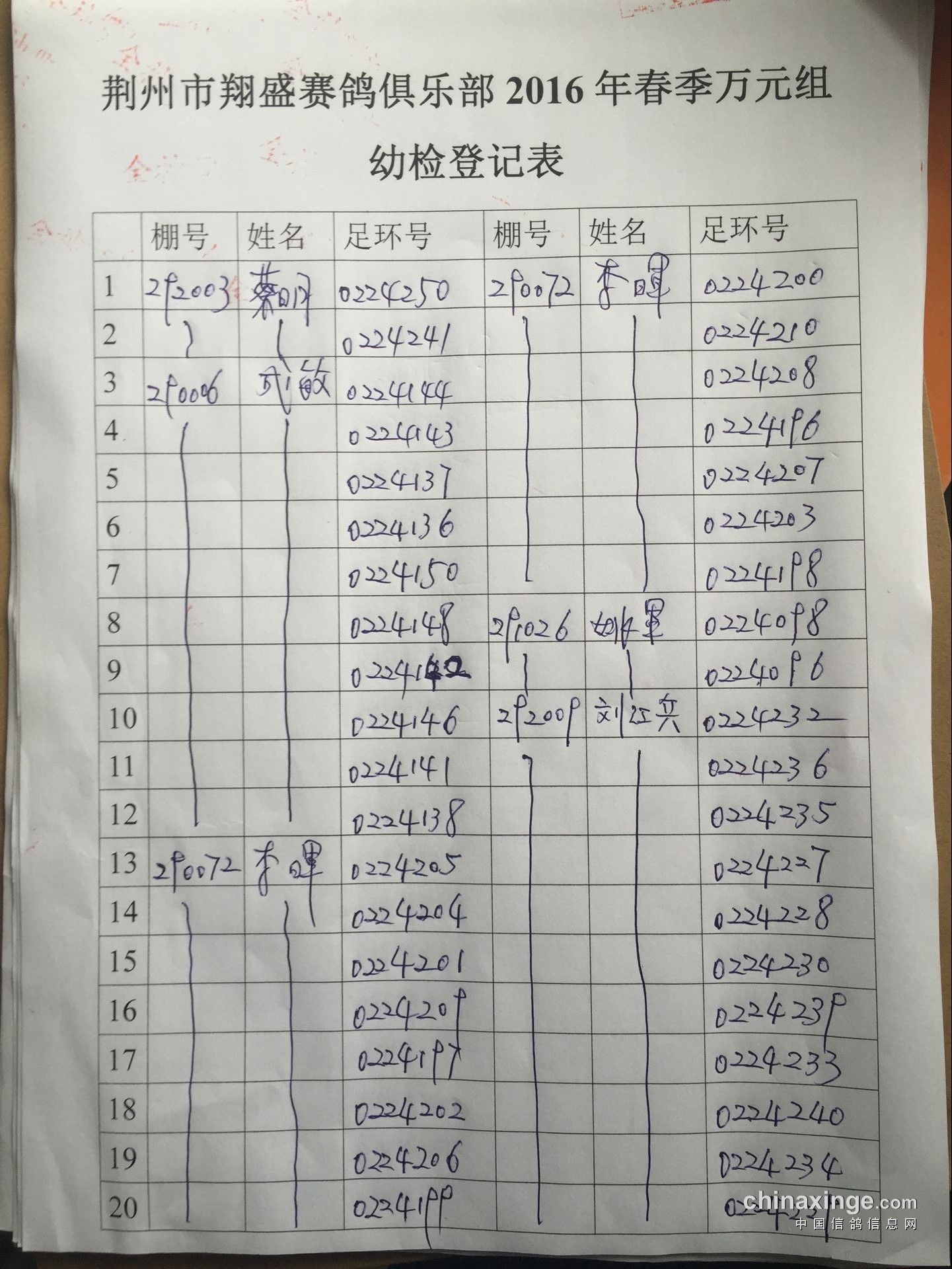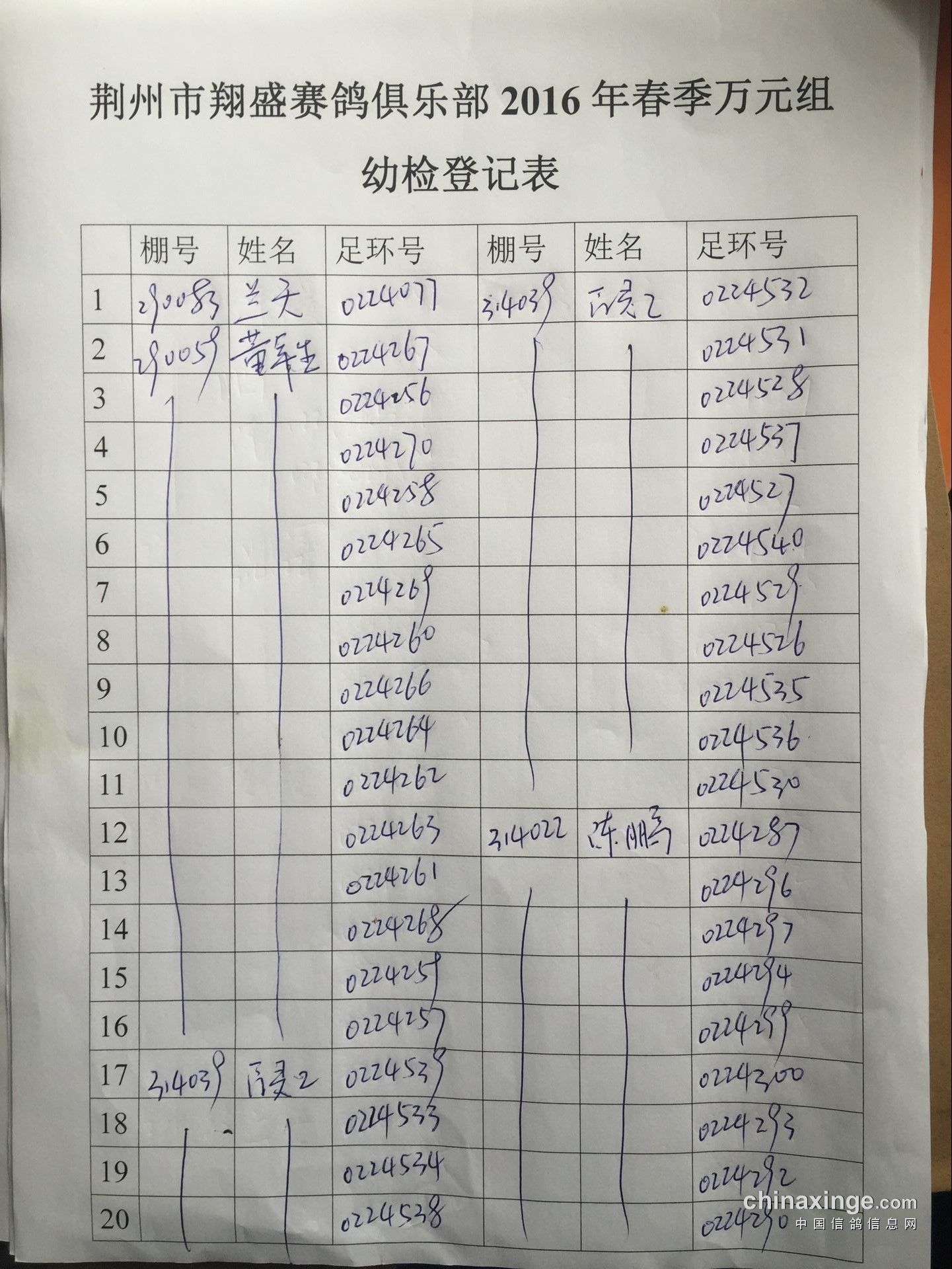 2017年11月22日全国千公里联赛廊坊站比赛集鸽清单