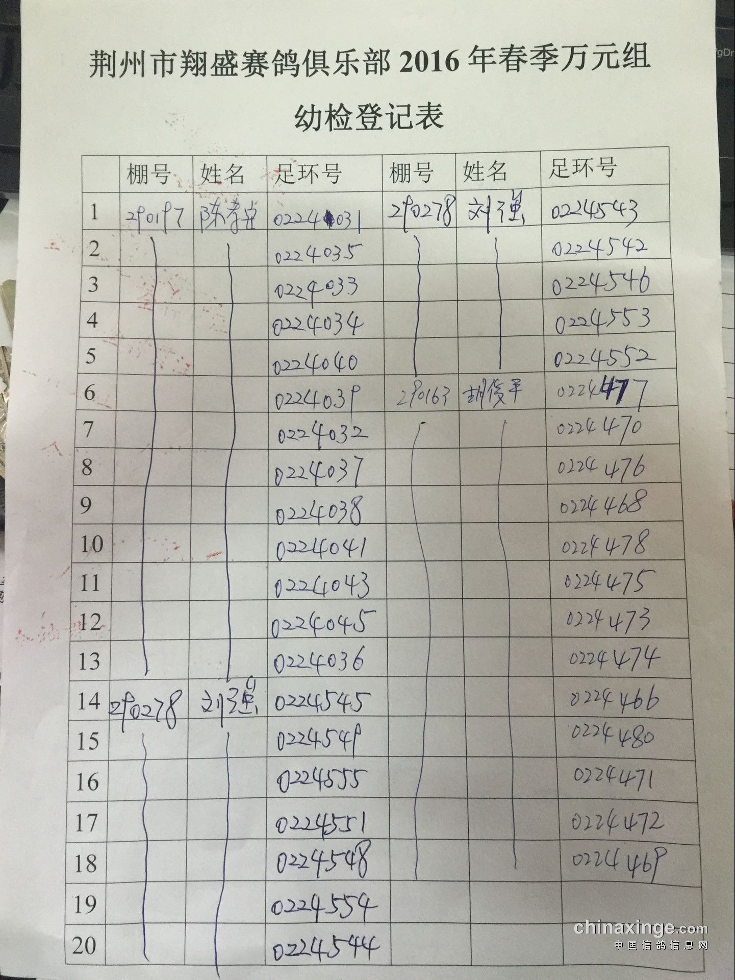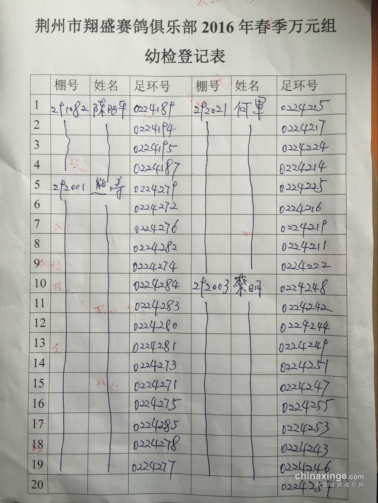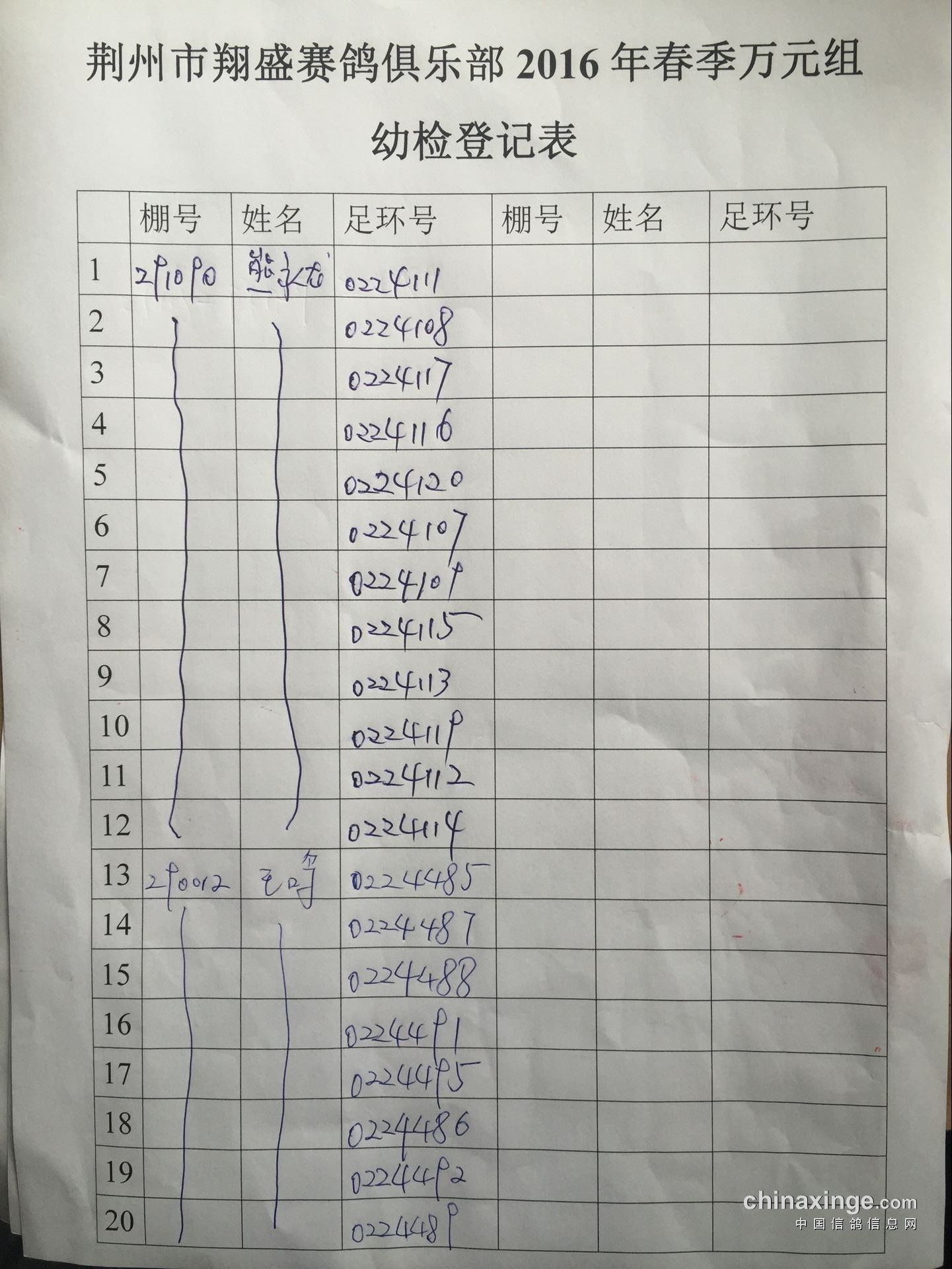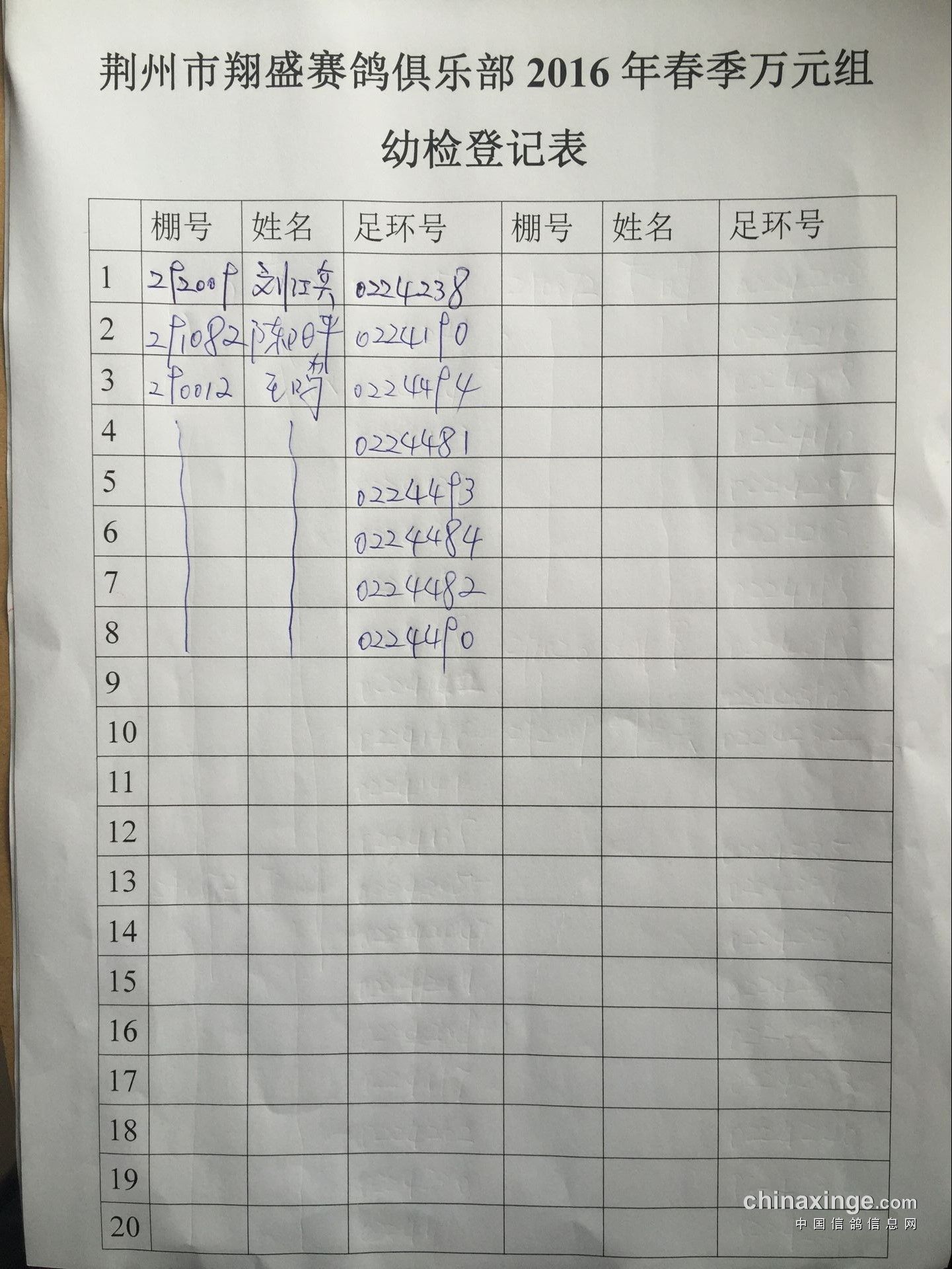 2016年春季万元组特比环幼检登记表