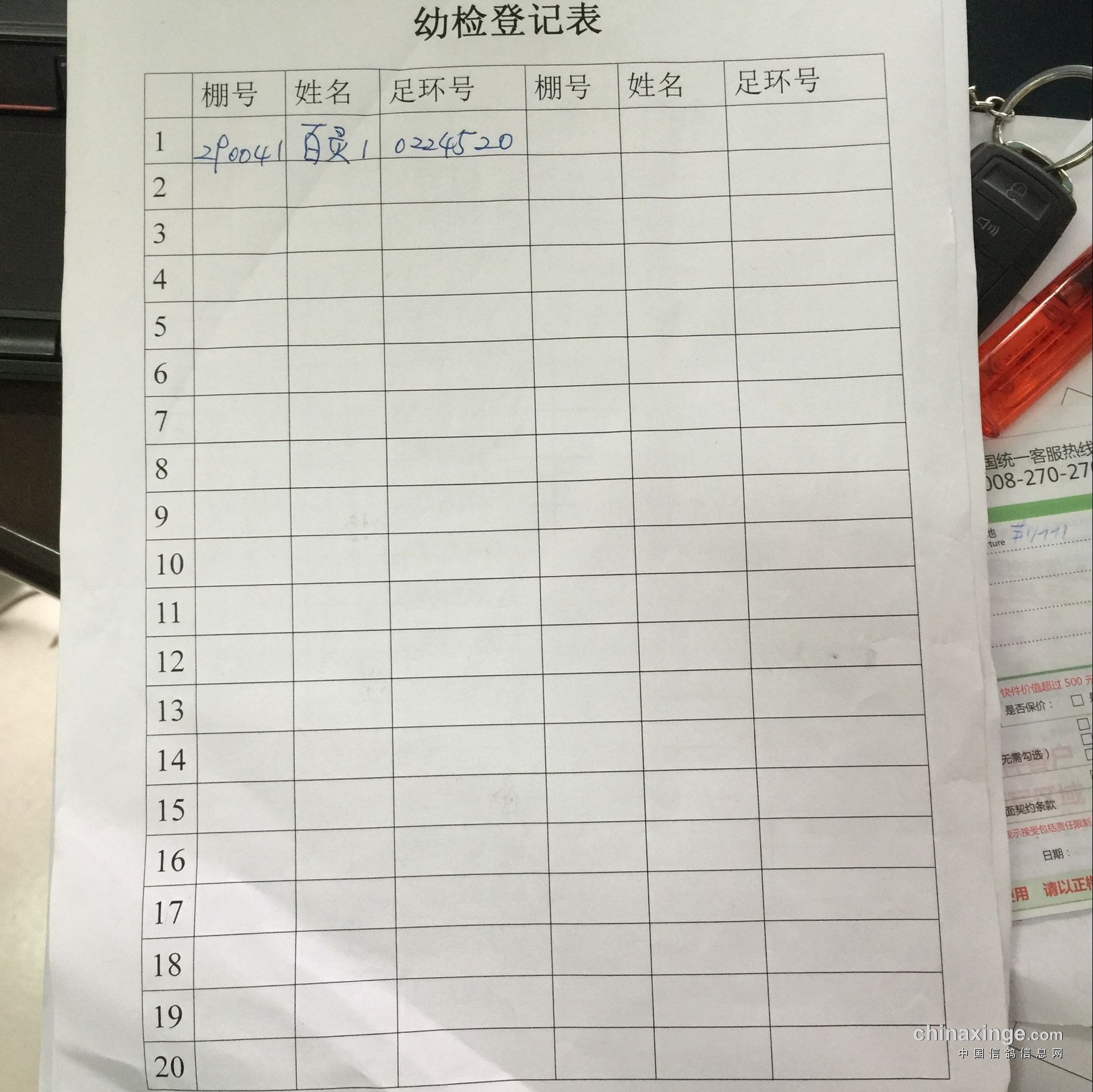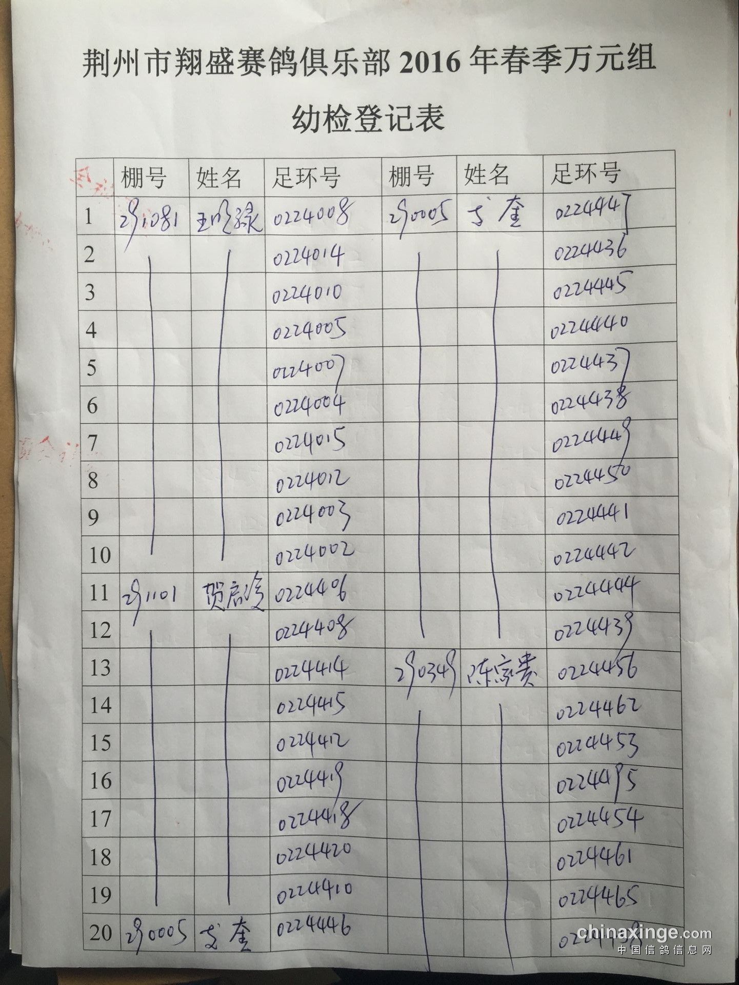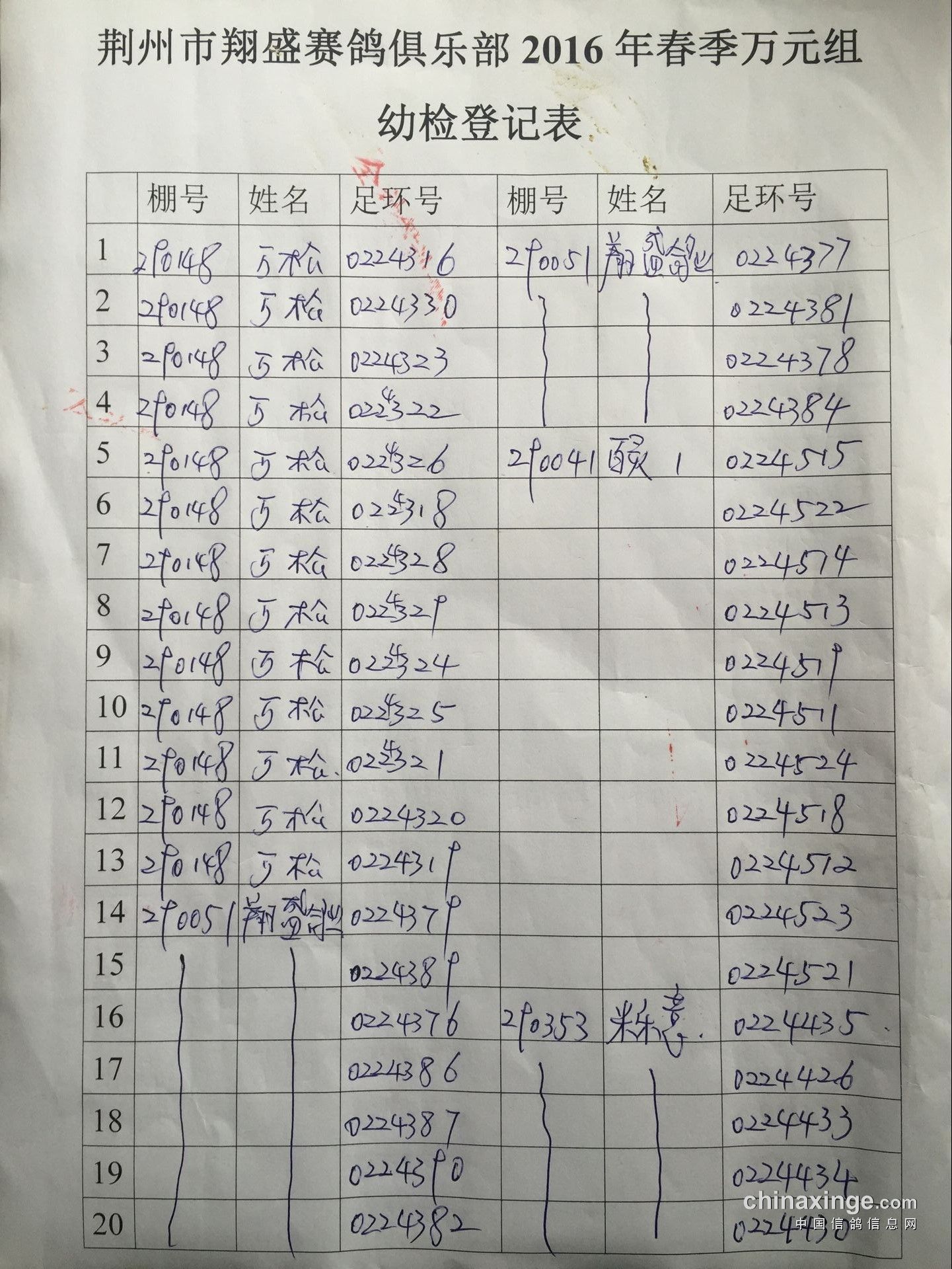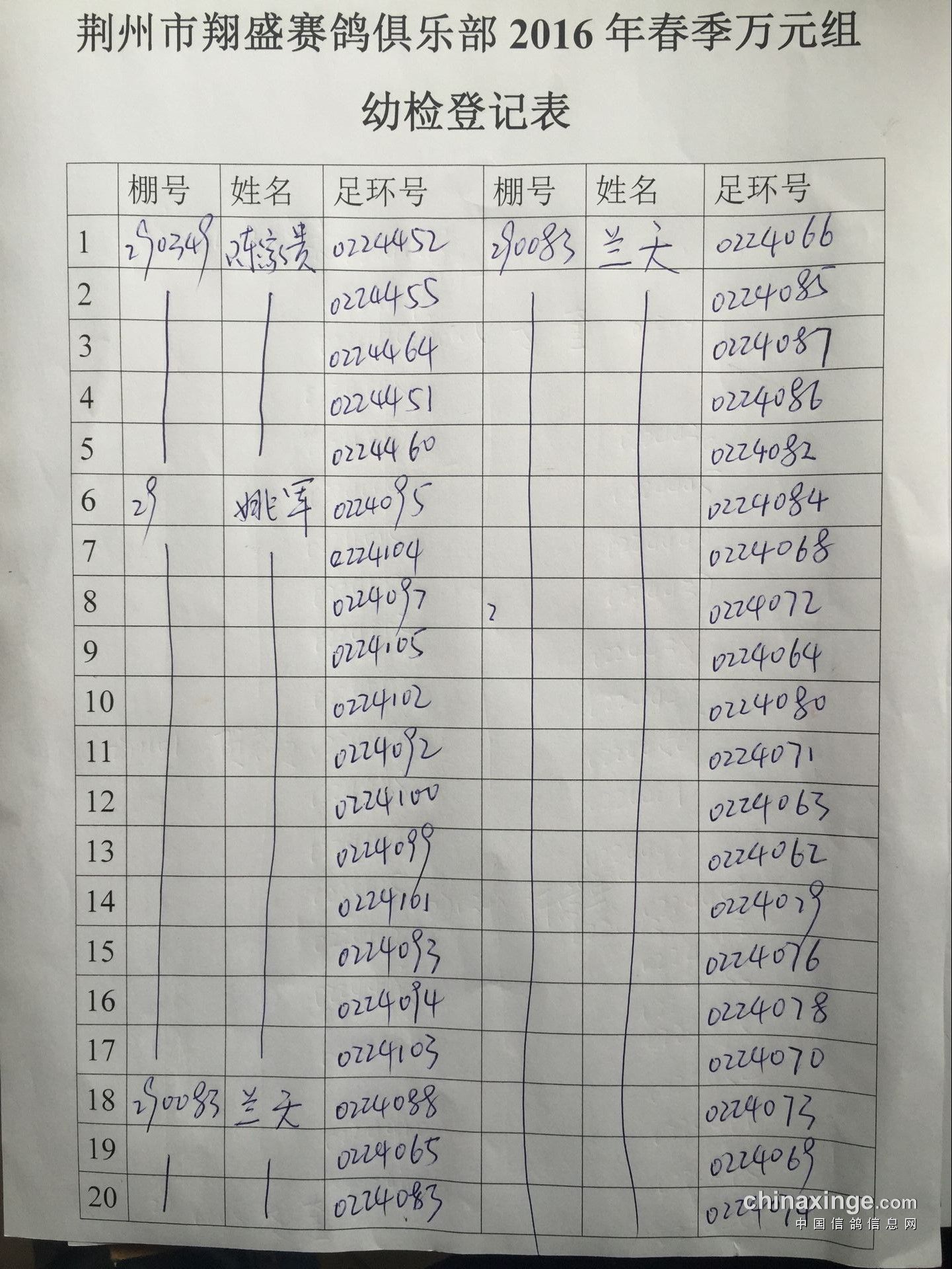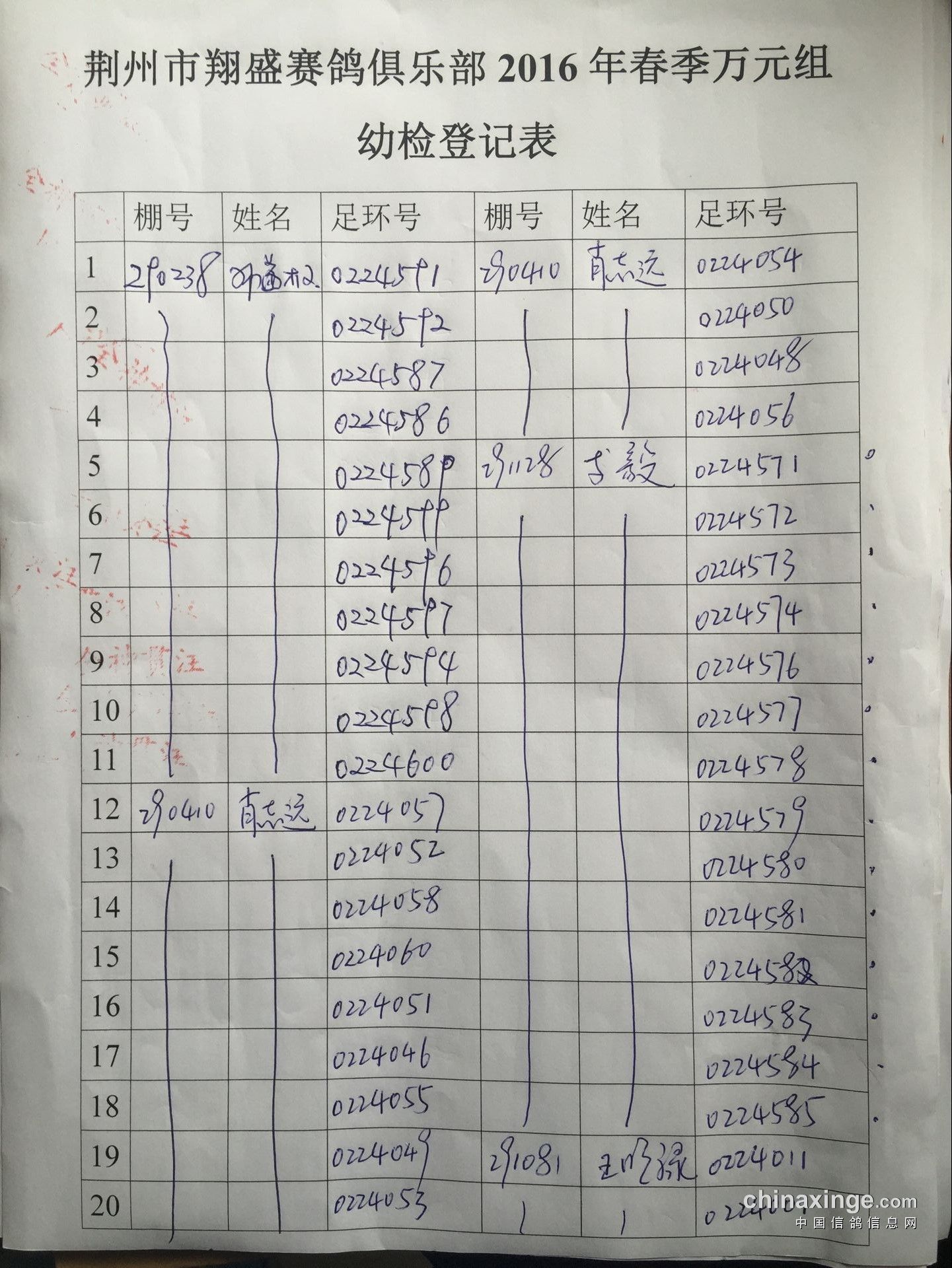 2016年春季万元组特比环幼检登记表