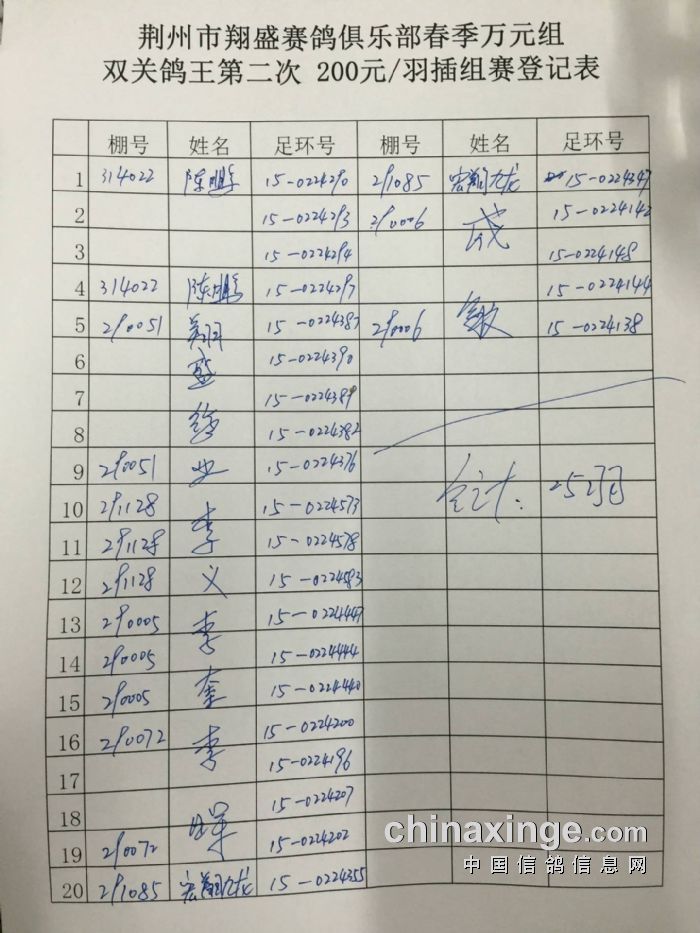 2017年11月22日全国千公里联赛廊坊站比赛集鸽清单