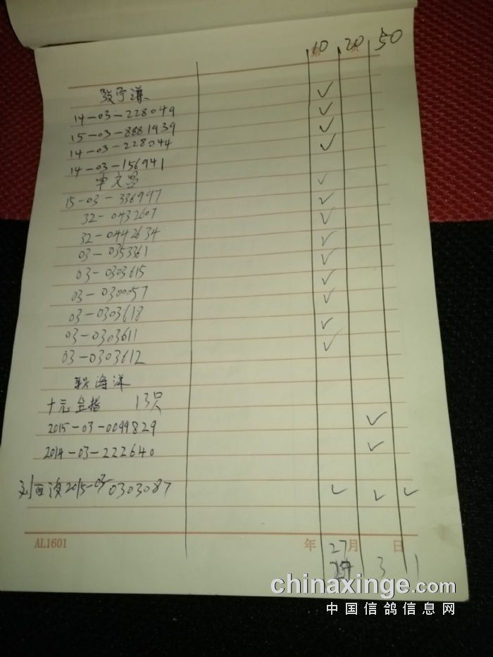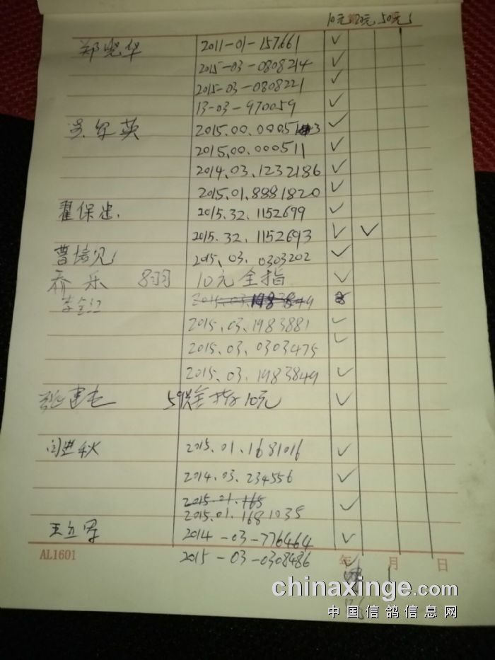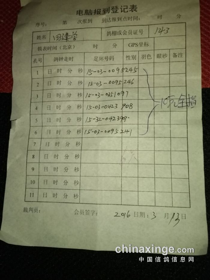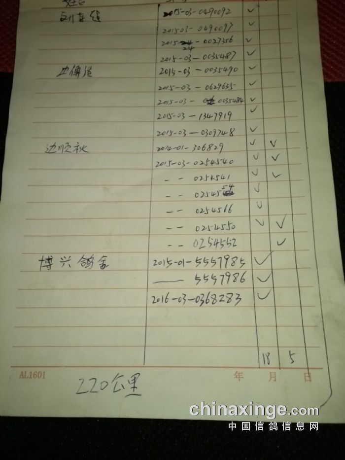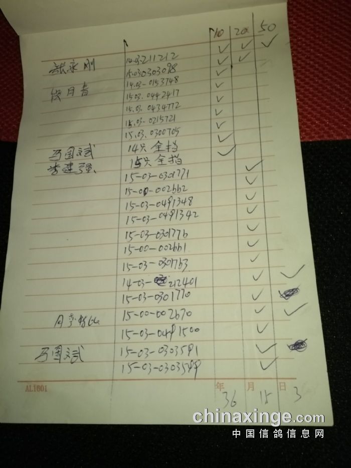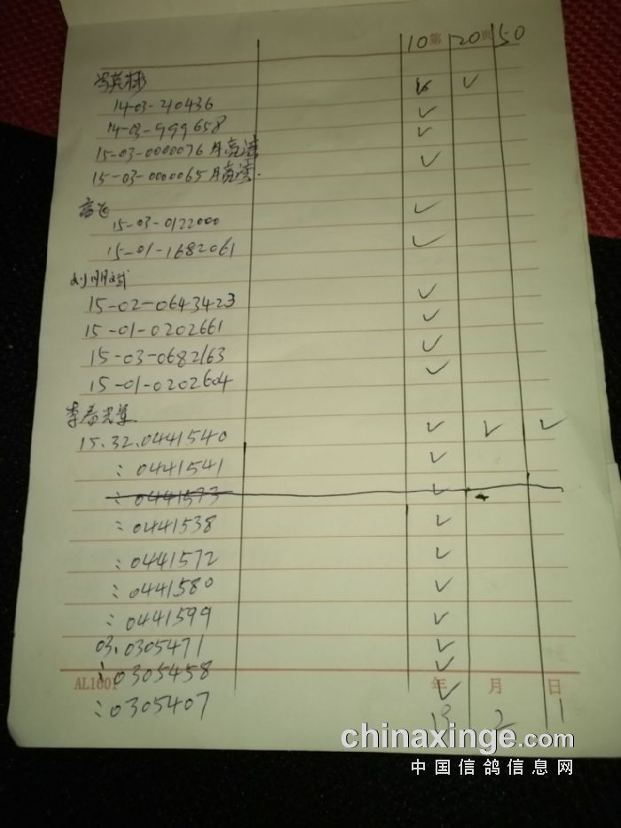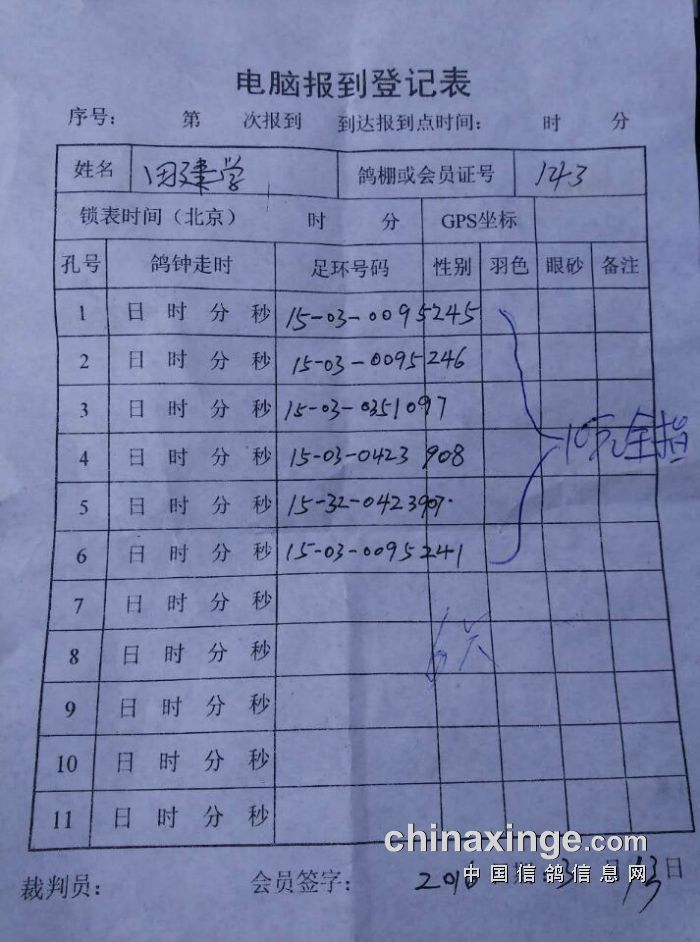 宁晋大陆信鸽协会25年秋200公里清丰成绩