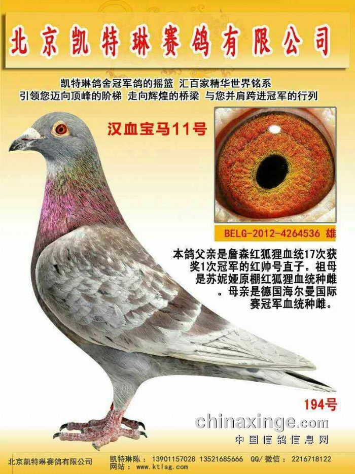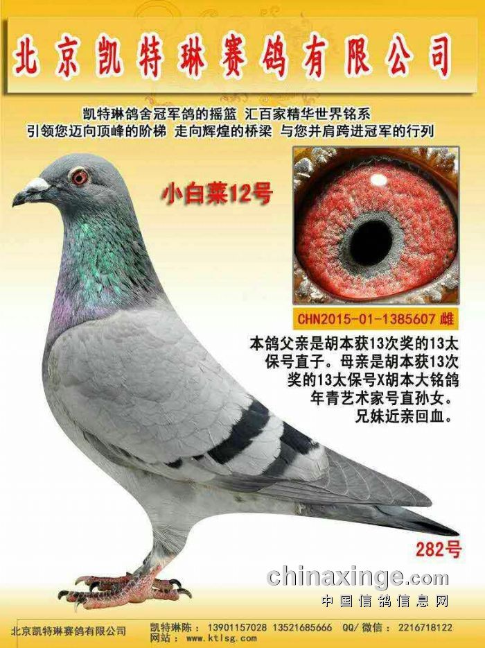 北京凯特琳赛鸽公司3月20号在灞桥鸽会举办展卖会,部分名鸽欣赏!