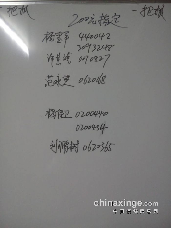 郭守君放14羽,指定6羽。8羽未指环号:(15-10-0017502.15-32-0317694.15-10-0158092.15-32-0317697.15-10-0298455.15-10-0092094.13-10-605664.15-10-0158096.)