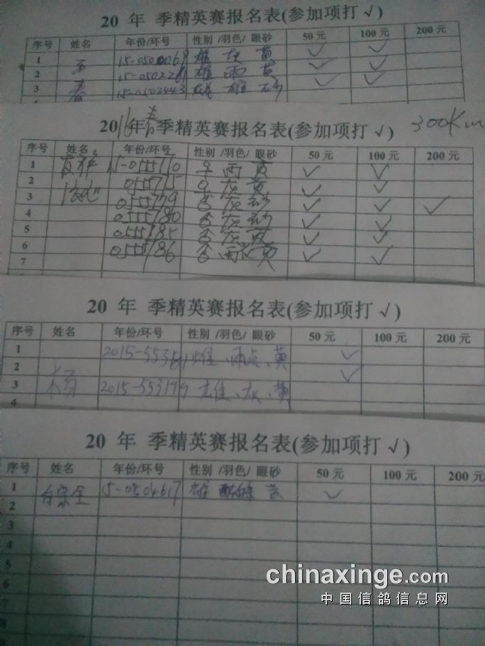 2016年春季300公里精英赛参赛表(参加项打√)
