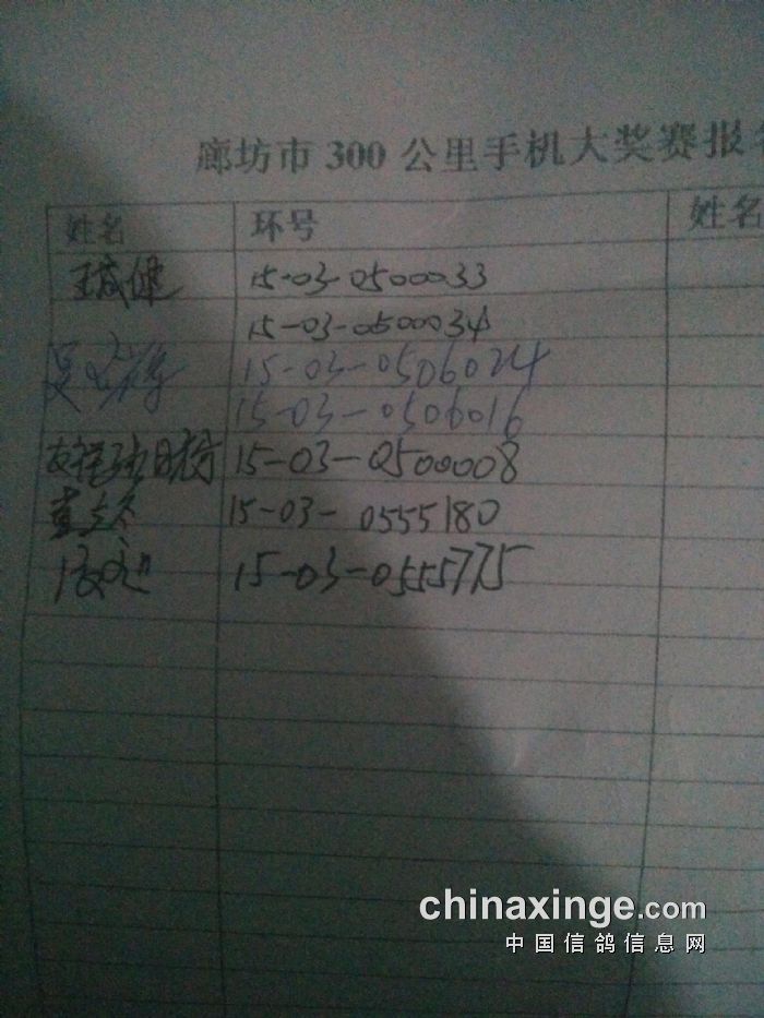 2016年春季300公里手机赛参赛表