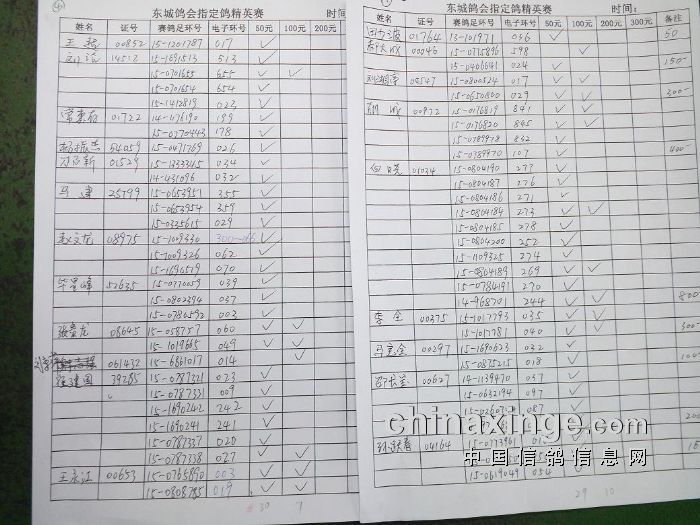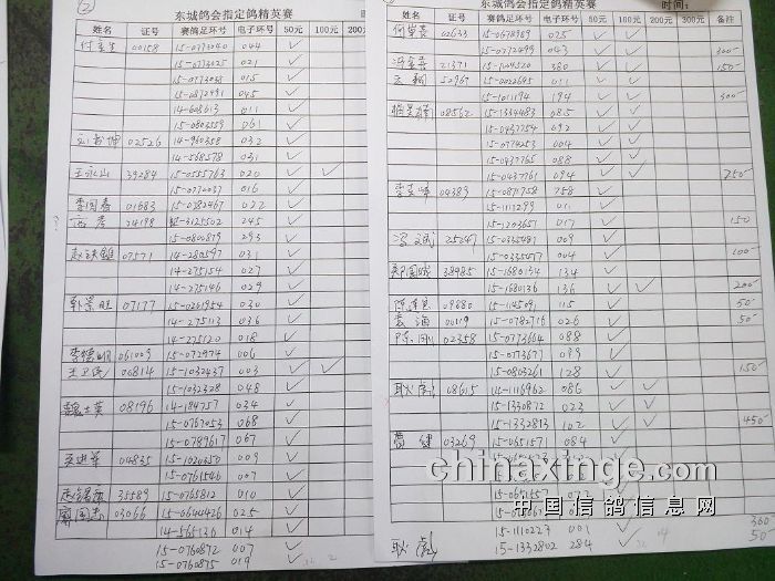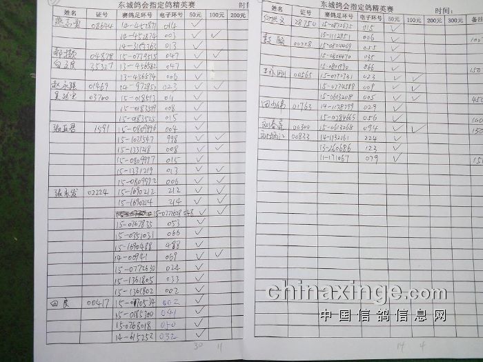 50元精英共集鸽272羽 录取25名 最后一名350元