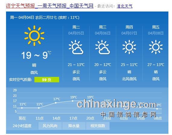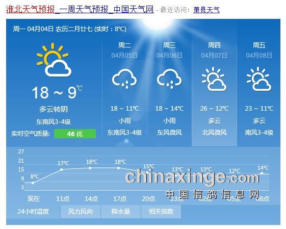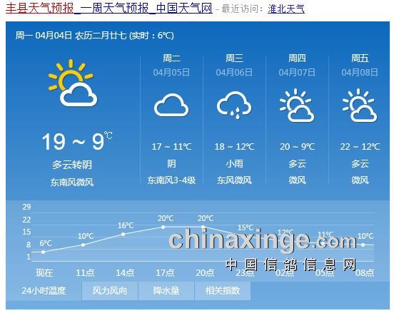 淮北市信鸽协会2016年春季200公里宁阳站,已于今晨7点40分在山东宁阳开笼;司放地多云,鸽群走势良好,以下是今日沿途天气预报: