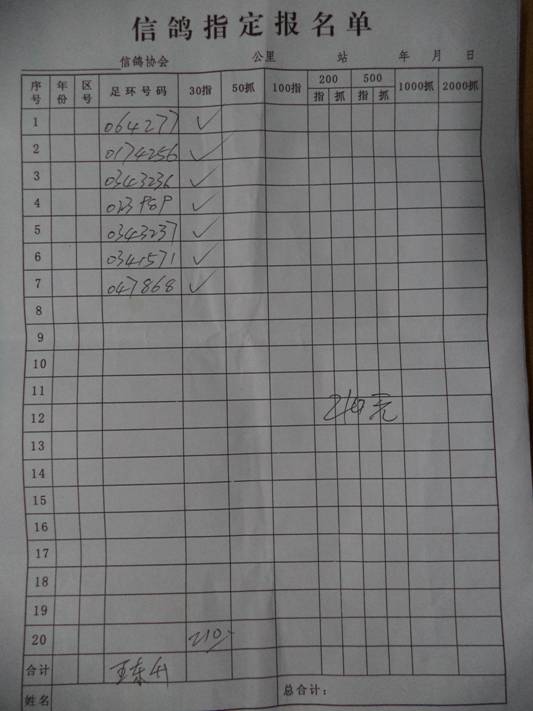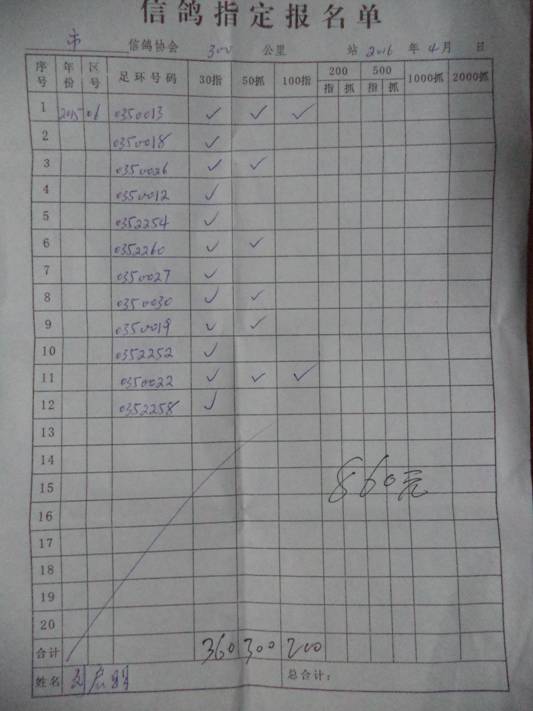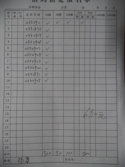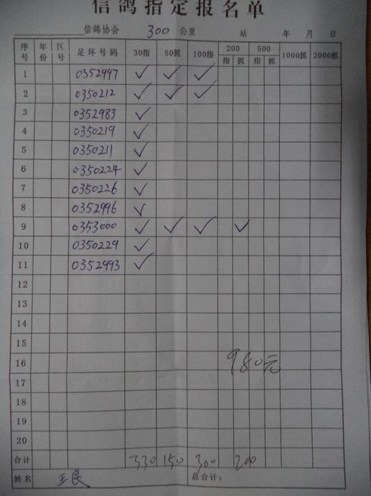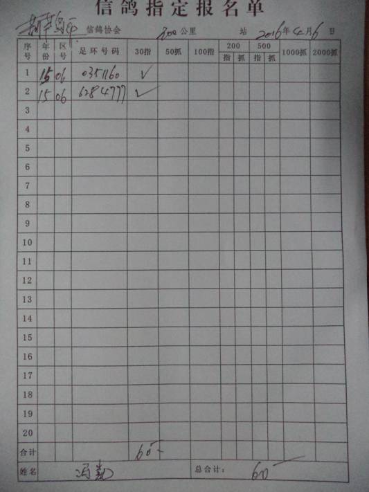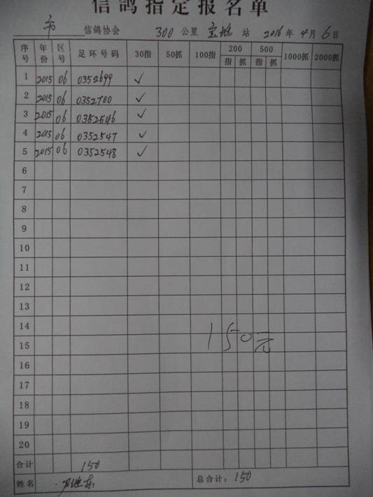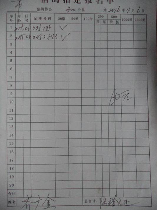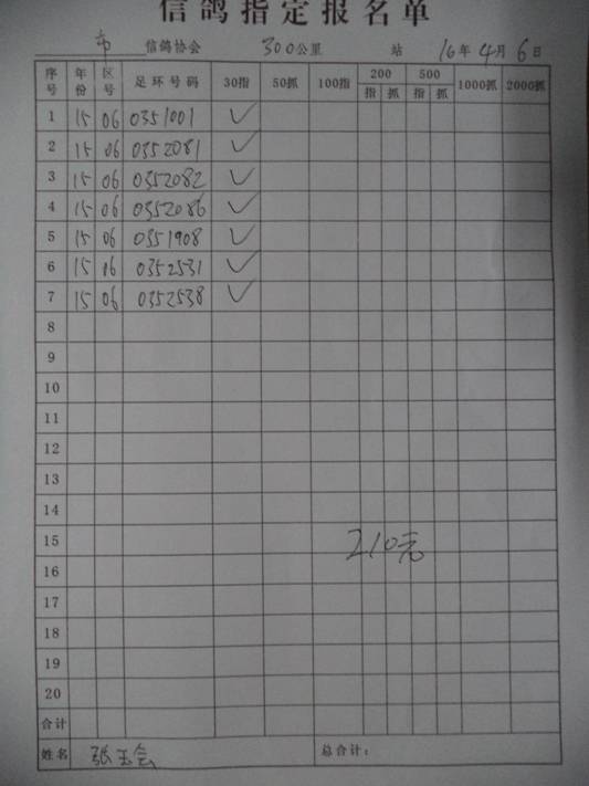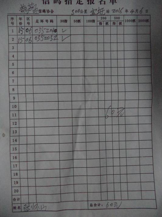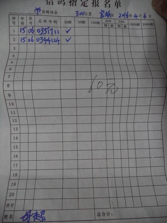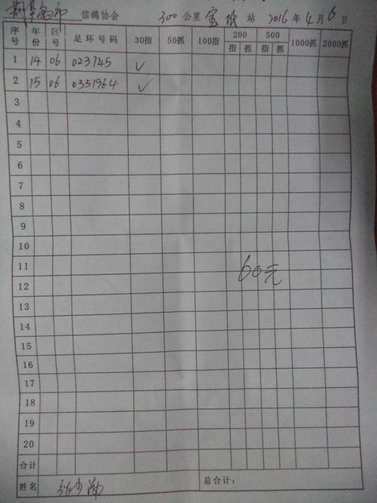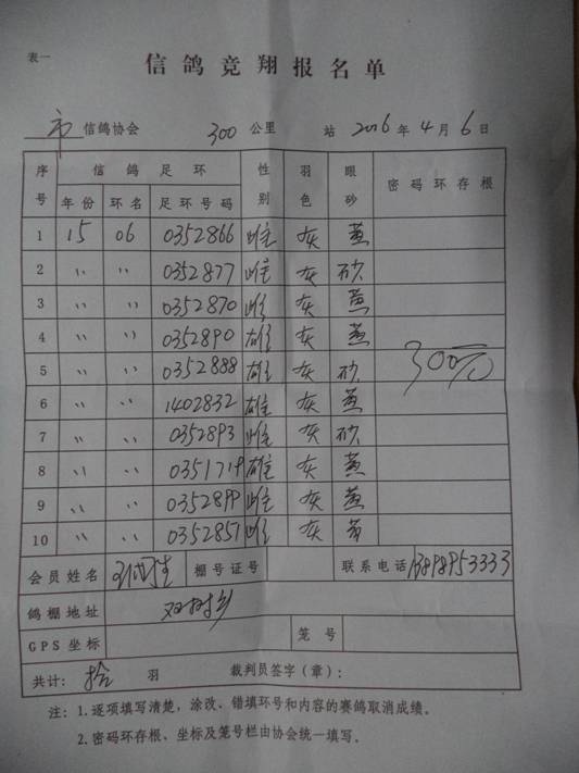 2016春宝坻300公里指定鸽名单3