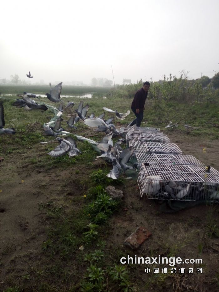 襄城县信鸽协会470公里今早9:00在湖北白螺镇北朱河开笼,司放地多云,鸽群走势良好。今晚19:00-20:00携带第一羽归巢鸽到协会报到。