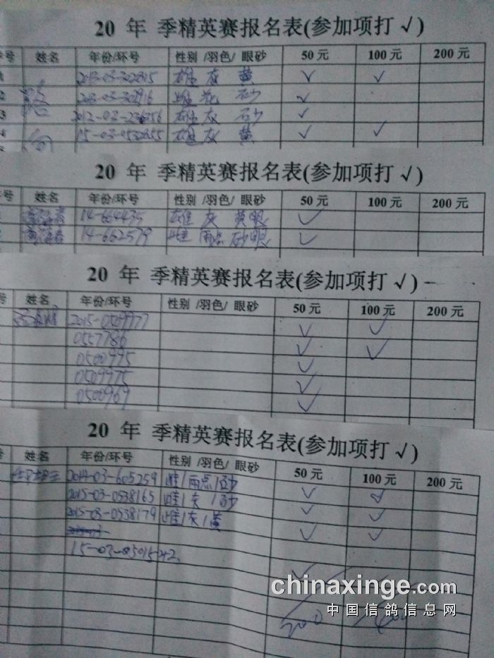 B组100元30羽 录取 3名 1-2名各1000元 3名720元